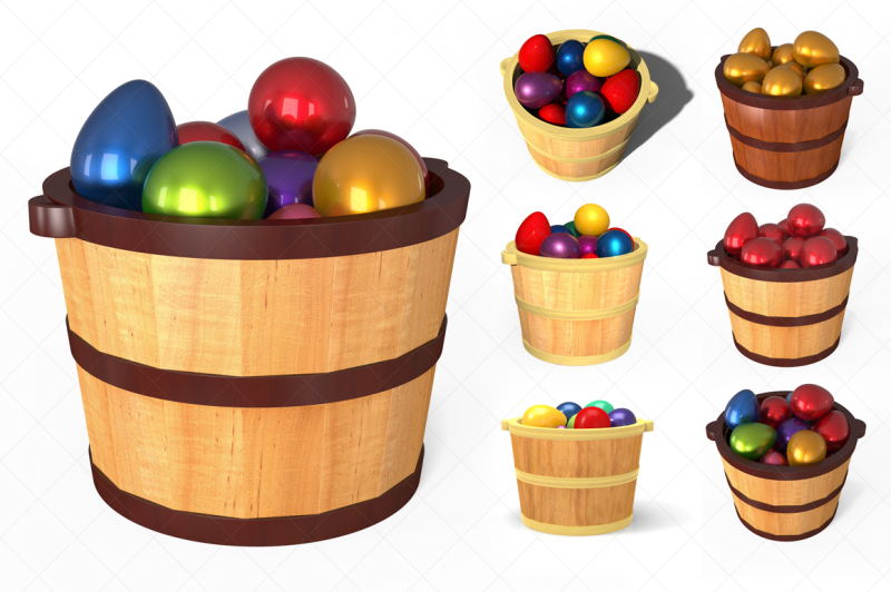 3. Wooden bucket with easter eggs – 3D by Pixaroma