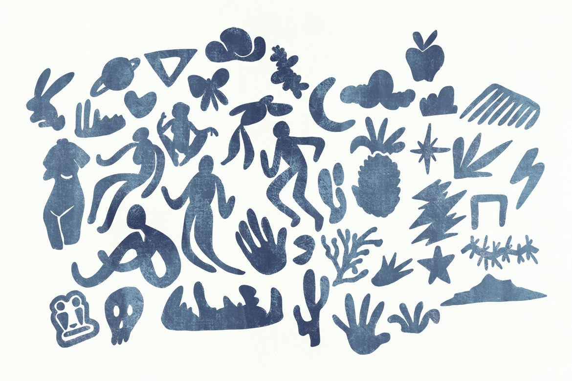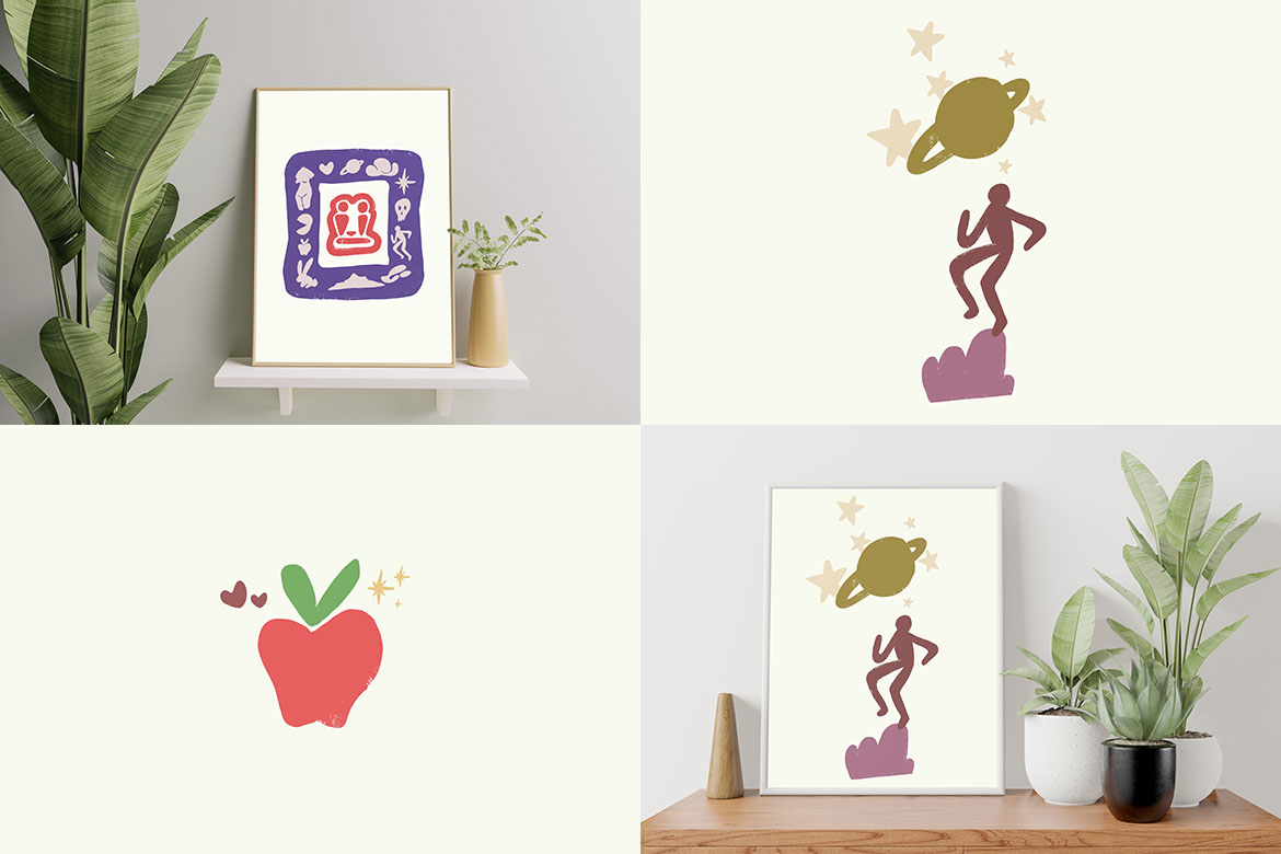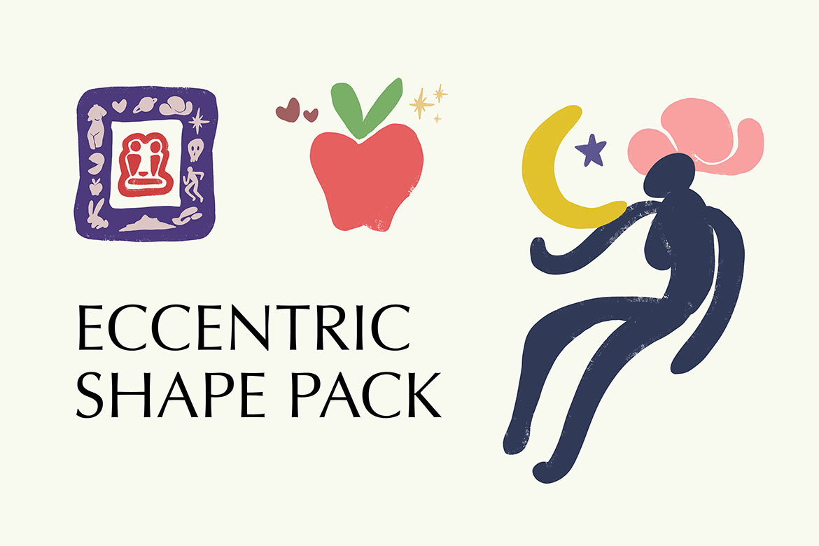 - Gradient and grain textures and shapes + simple illustration shapes for your new eccentric style projects!