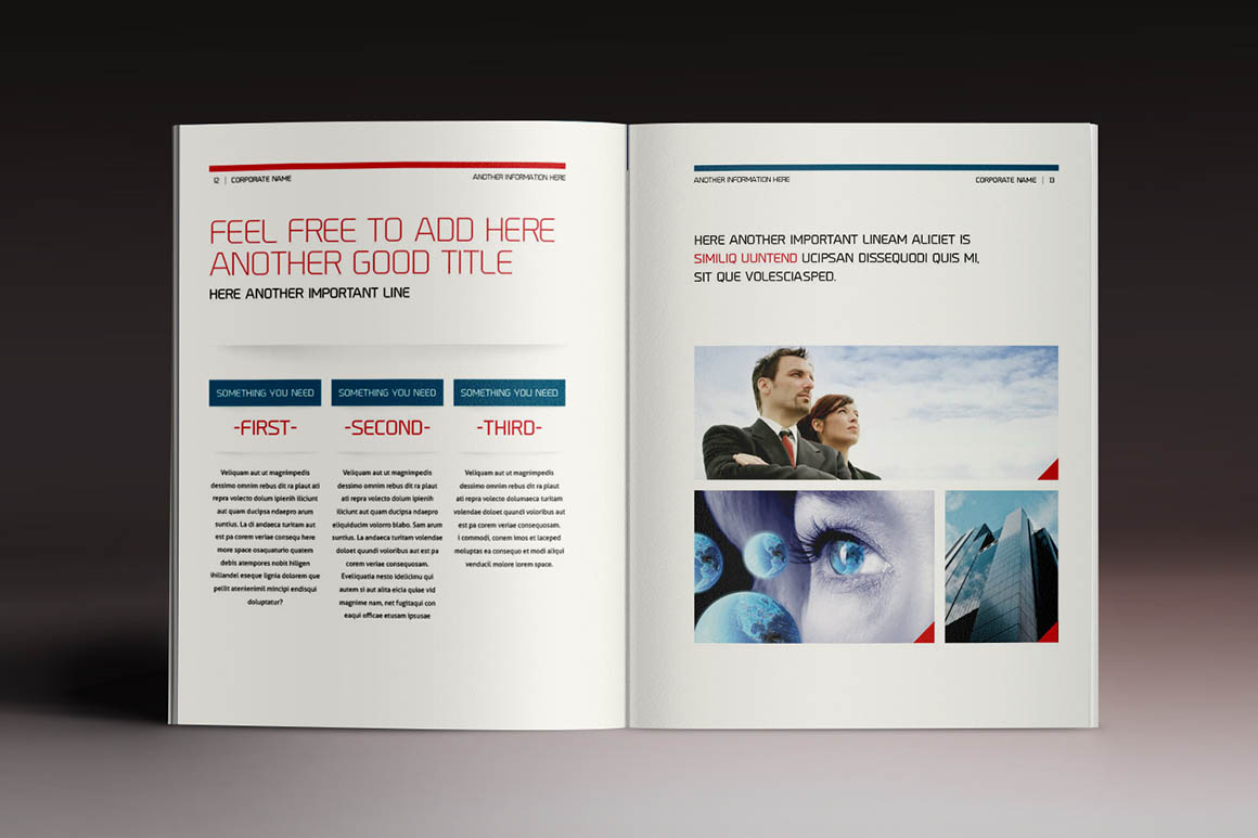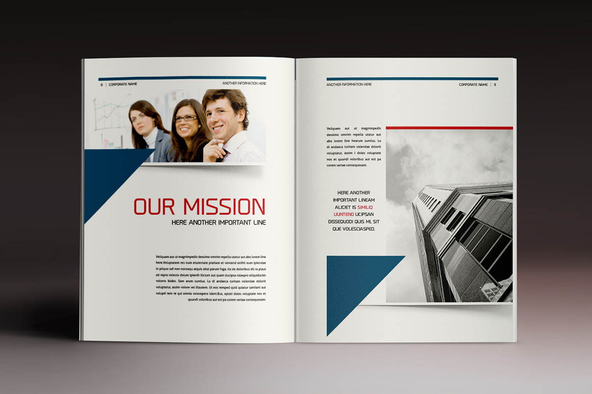 - Professional, clean and modern 16 page corporate business brochure