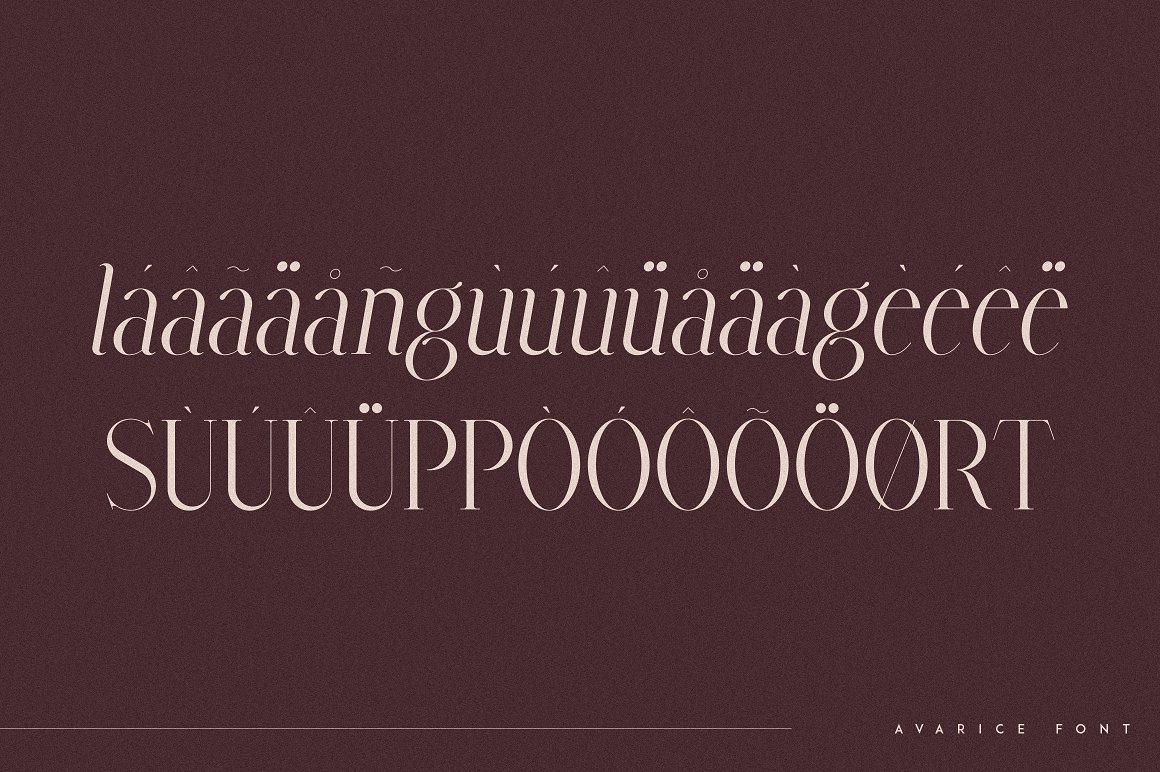 Avarice is long and elegant typeface loaded with 4 fonts and multilingual support. It’s a very versatile font that works great in large and small sizes. This font is perfect for branding projects, home-ware designs, product packaging, magazine headers – or simply as a stylish text overlay to any background image.