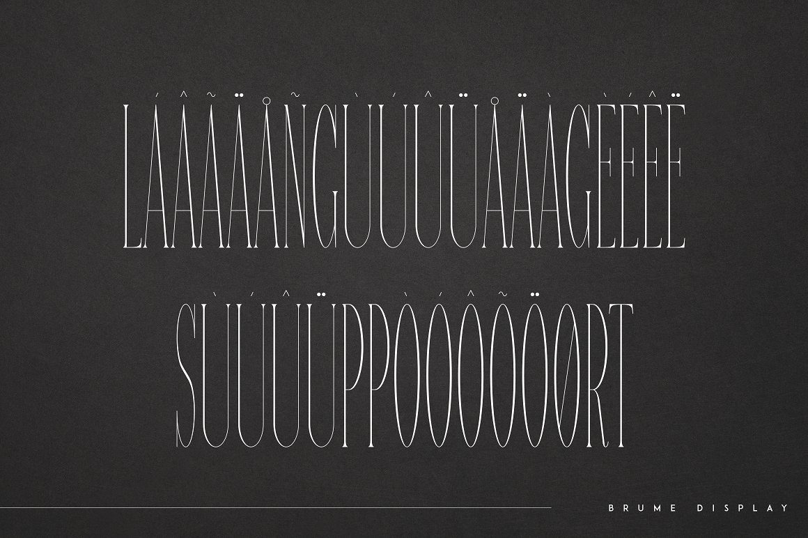 Brume is long and bizarre font with multilingual support. It’s a very versatile font that works great in large and small sizes. This font is perfect for branding projects, home-ware designs, product packaging, magazine headers – or simply as a stylish text overlay to any background image.