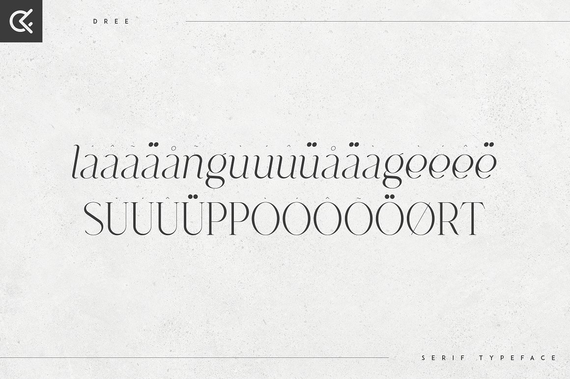 Dree is creative and minimal typeface loaded with 6 fonts and multilingual support. It’s a very versatile font that works great in large and small sizes. This font is perfect for branding projects, home-ware designs, product packaging, magazine headers – or simply as a stylish text overlay to any background image.