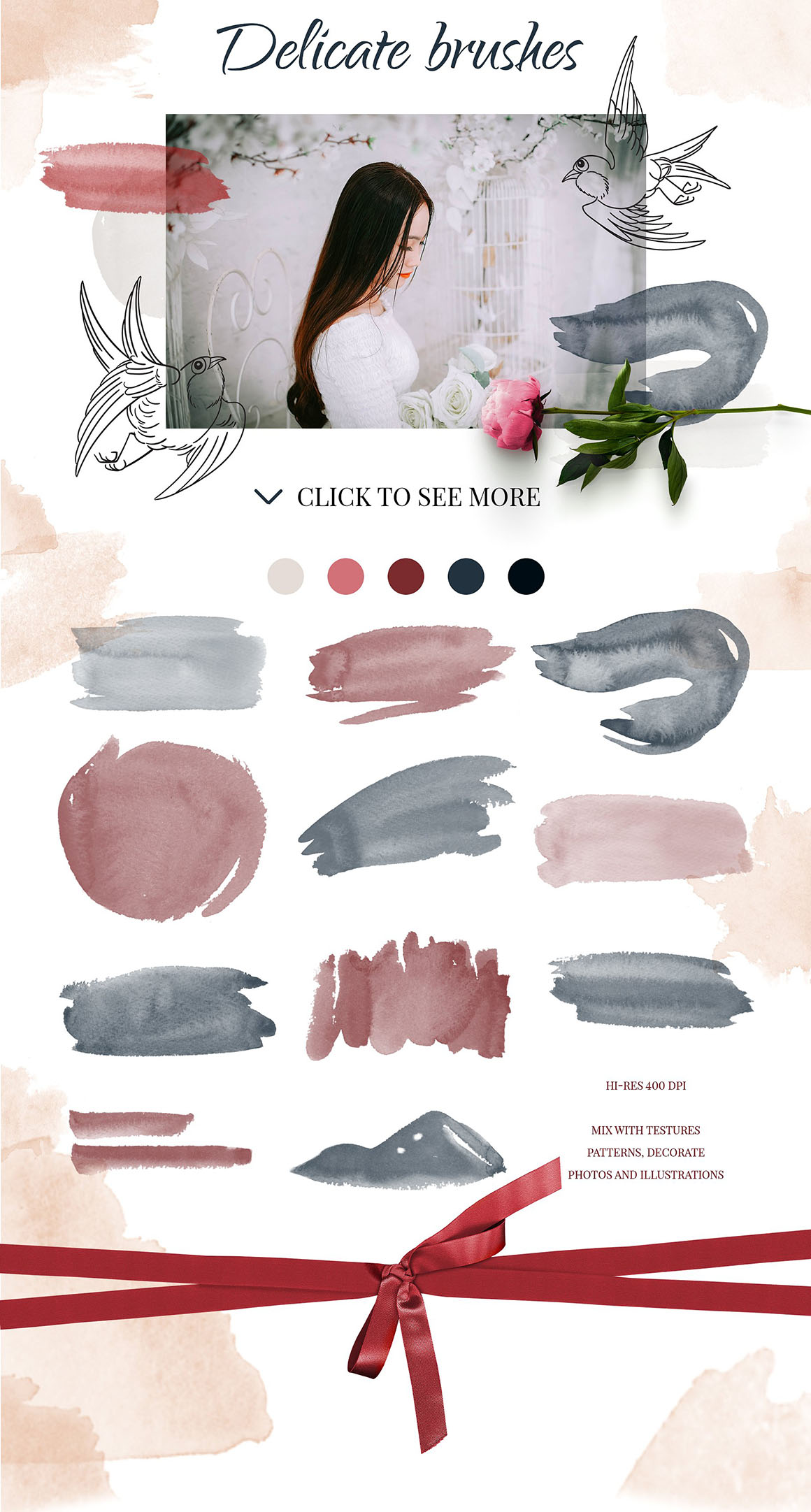 - 12x PNG watercolor textures in hi-res + 1x .abr file with Photoshop brushes (CC15)