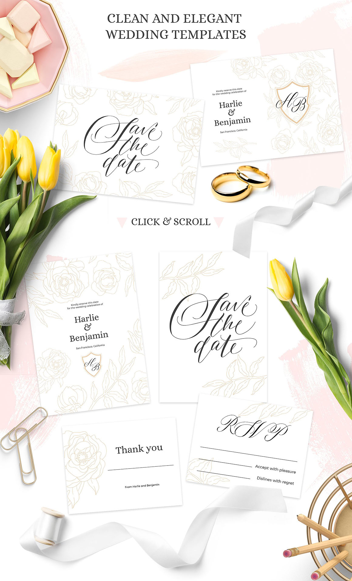 - 6x PSD editable templates with Invitations, Save the Date, Thank you card and RSVP