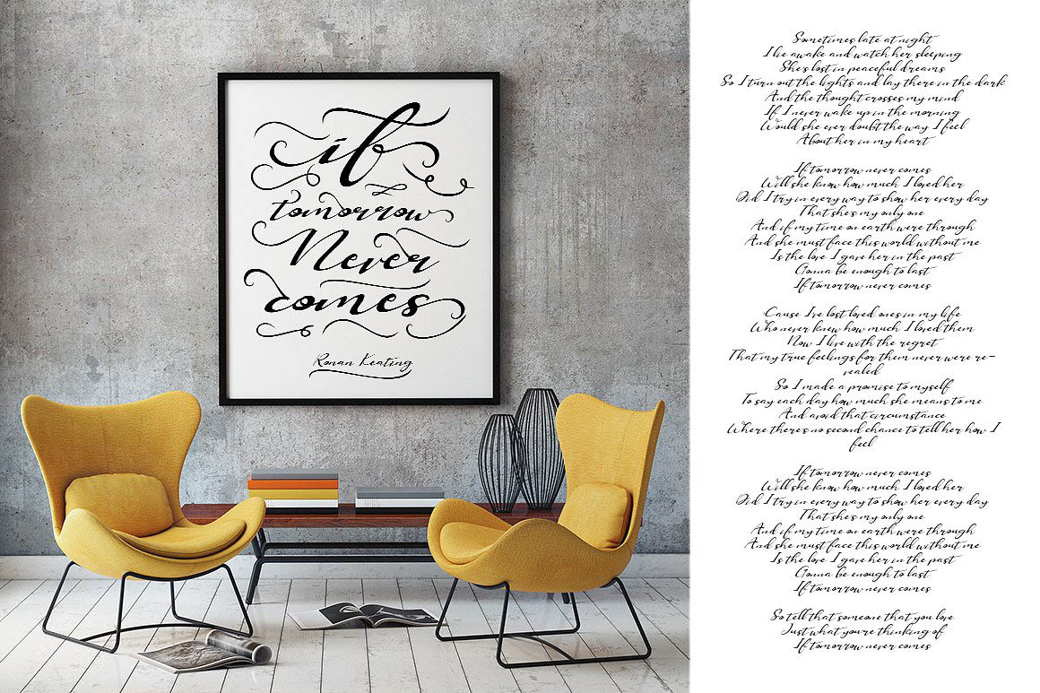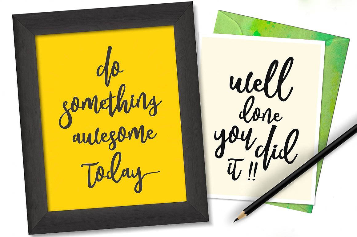 Feel Script! calligraphy touch flat amazingly fun yet elegant, which allows you to create beautiful handmade typography in a heartbeat. Feel Script is Perfectly to make your text stand out so perfect for logos, quotes printed, invitations, business cards, product packaging, headers and anything else your imagination feel.