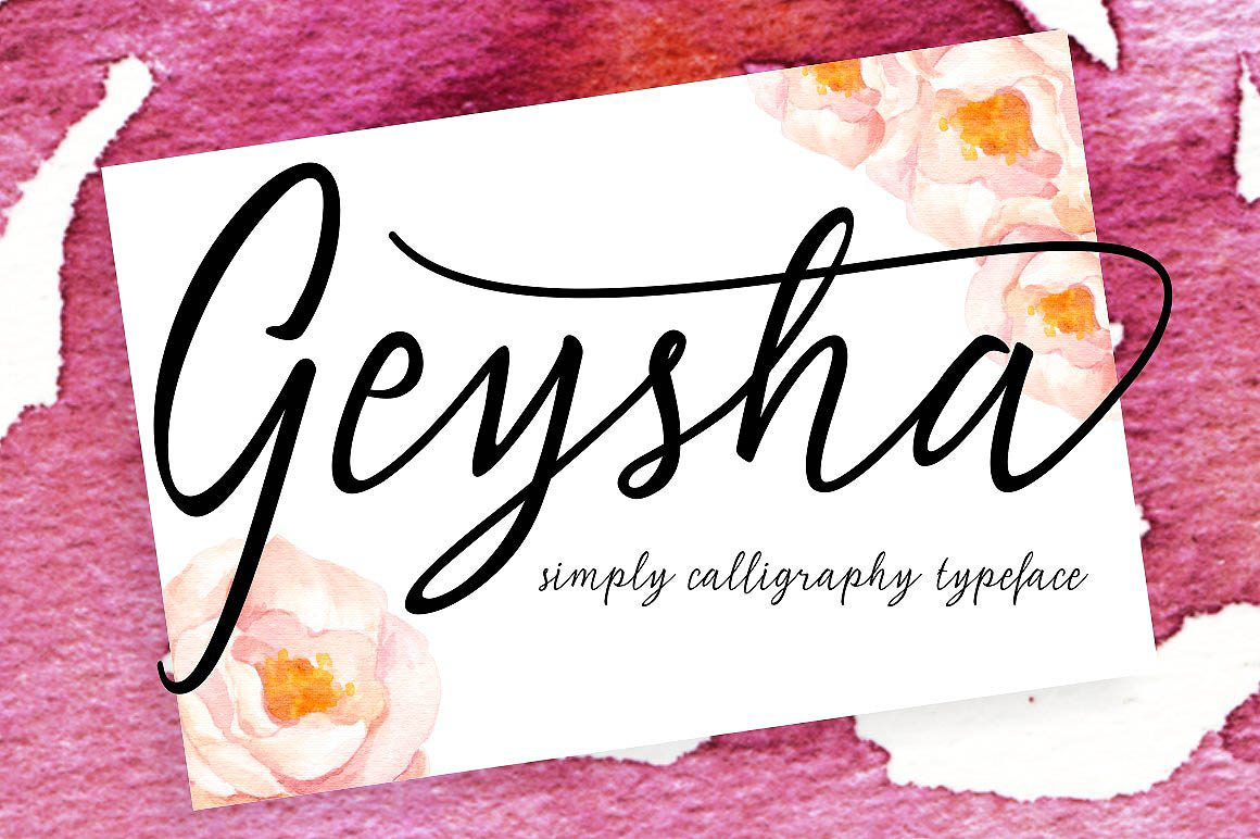 Geysha Script is a simple modern manuscript letters, each letter has to be careful is made for you to look beautiful. With the modern style script font would be perfect for your various projects such as: quote, header blogs, posters, wedding, branding, logos, fashion, clothing, letters, invitations, stationery, etc.