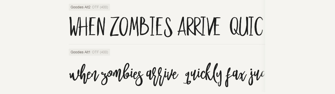 Goodies Typeface font brush is classy script a beautiful with hand drawn to give a great contrast between thick and thin curves.Goodies is perfect for: Logos, branding, apparel, scrap booking, wedding invitations, quotes, labels & more.