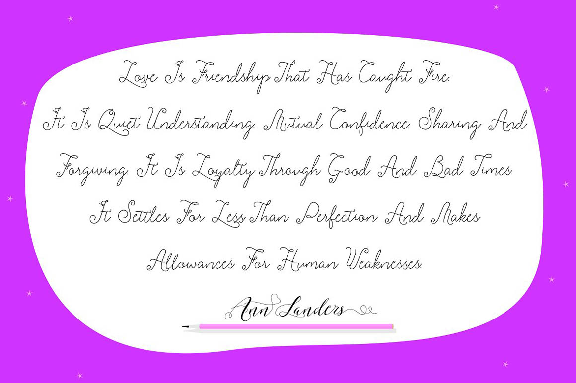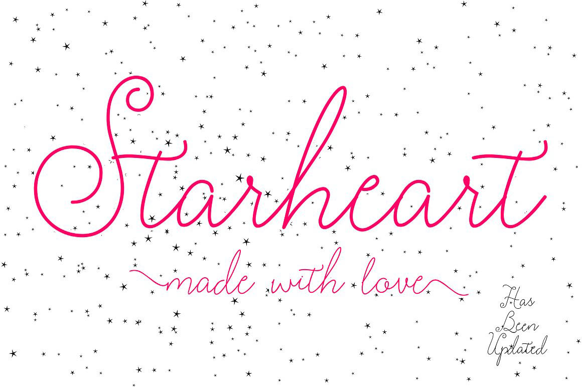 Starheart A casual typeface designed with a touch of love. Starheart font contains 336 glyphs very elegant, perfect calligraphy lines for design projects wedding, invitations, greeting cards, signatures, watermarks, logos, handwriting and many more.