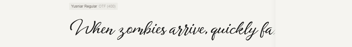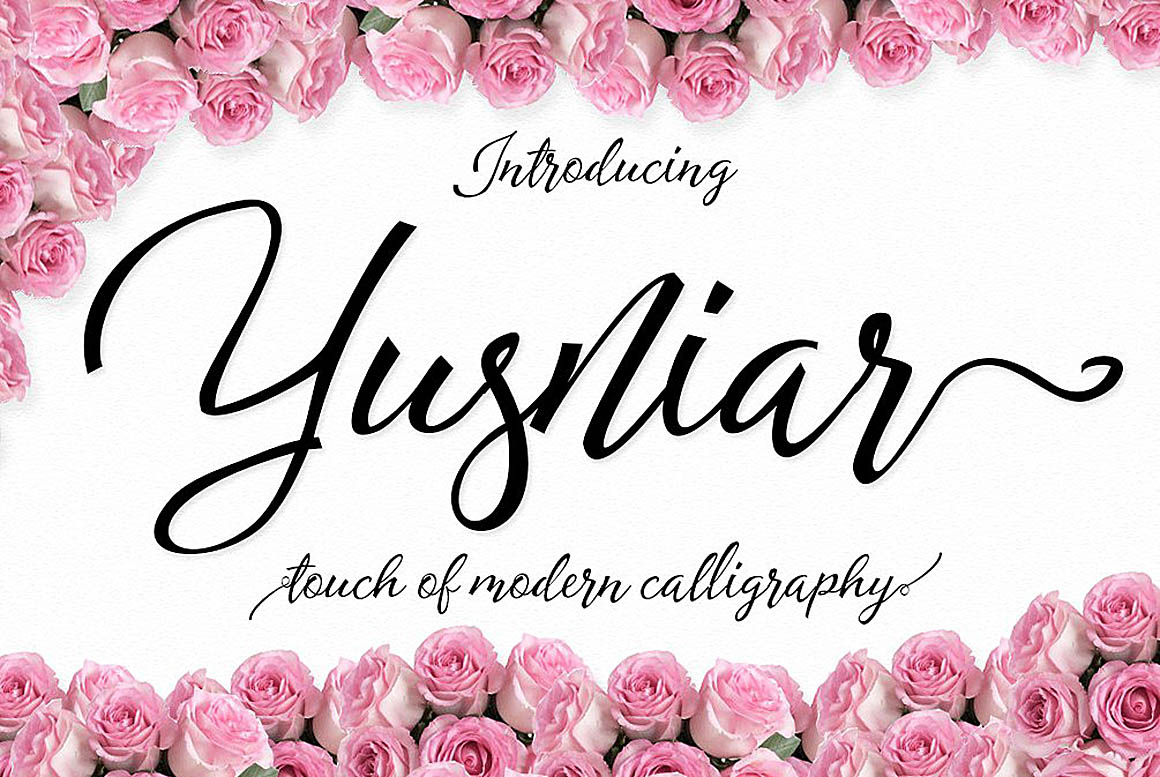 Yusniar Script modern calligraphy sweet cut. It is versatile and flexible, making it easy to match with other typography to create some wonderful projects like wedding invitations, vintage designs, greeting cards, posters, book covers, illustrations, etc.