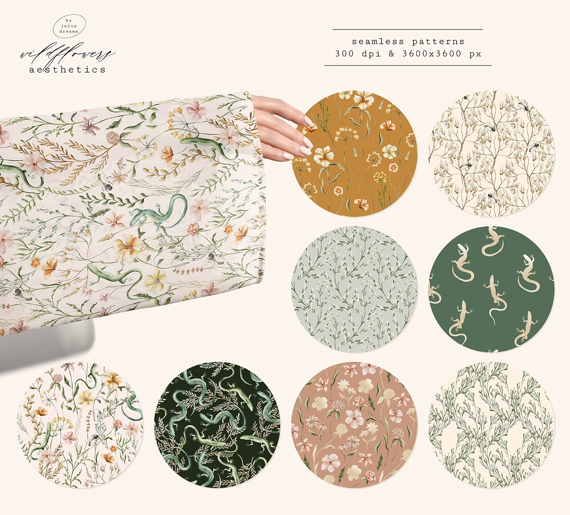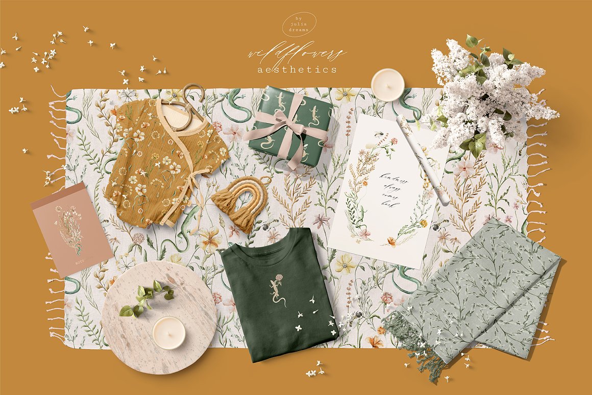 Wildflowers Aesthetics is a collection of tender and absolutely tiny watercolor flowers. Hand painted with love watercolor botanical elements can perfectly complement your project and help create a sophisticated, restrained and fashionable style. This collection was carefully crafted and great attention was paid to details. It consists of different pre-made elements and seamless patterns that can be used individually or combined with other elements. Use ready-to-use elements and patterns or create your own individual product using all these elements.