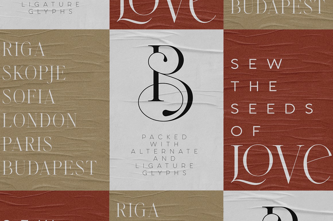 - 7 retro & elegant display fonts ( serif + 6 sans fonts) for your new projects!