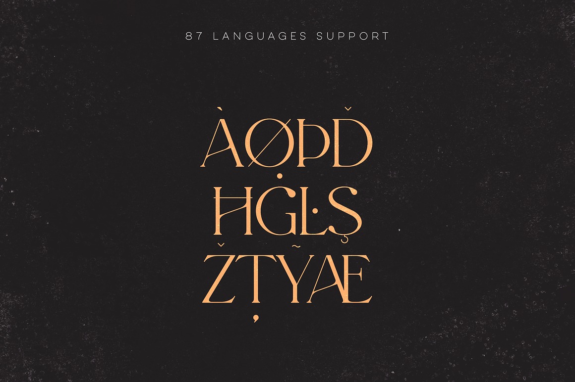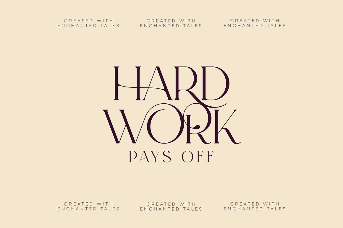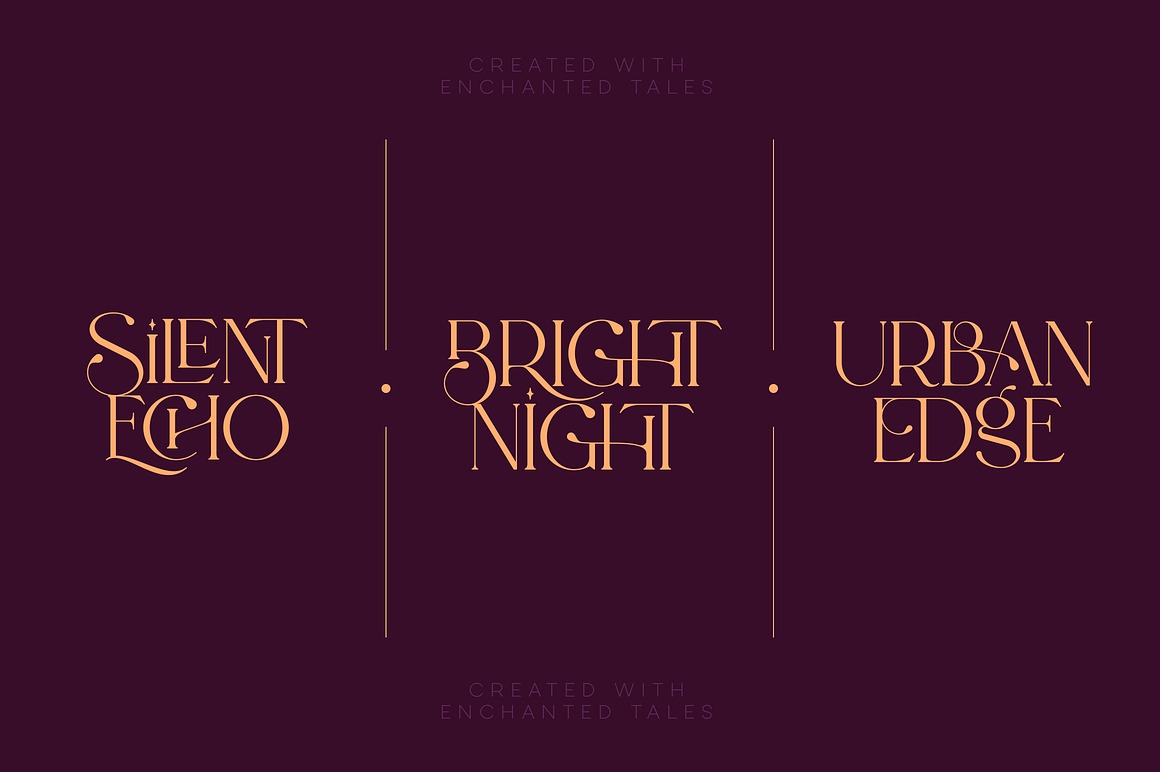 “Enchanted Tales” is a captivating serif font that offers a blend of classic elegance and modern versatility, making it an ideal choice for a wide range of creative projects. This font boasts an impressive support for 87 languages, ensuring global accessibility and inclusivity in your designs. One of the standout features of Enchanted Tales is its extensive collection of over 150 ligature glyphs, each meticulously crafted to add a unique touch of sophistication and flair to your text. The font’s alternate glyphs are a treasure trove for designers, offering endless possibilities for customization and creativity. These alternates are especially perfect for letterings, logos, and vintage designs, where a touch of character and uniqueness can make a significant impact. Whether you’re creating a brand identity, a book cover, or an invitation, Enchanted Tales brings a magical touch to your work, combining the timeless charm of serif fonts with the dynamic potential of modern typography.