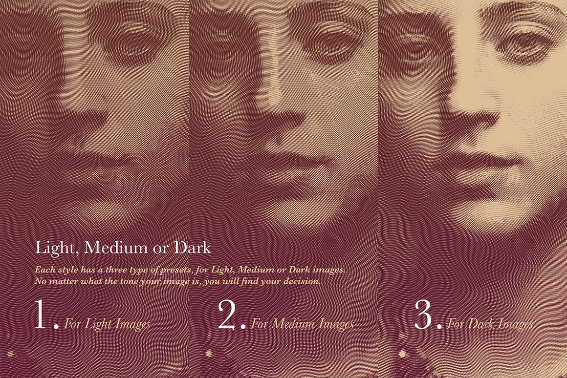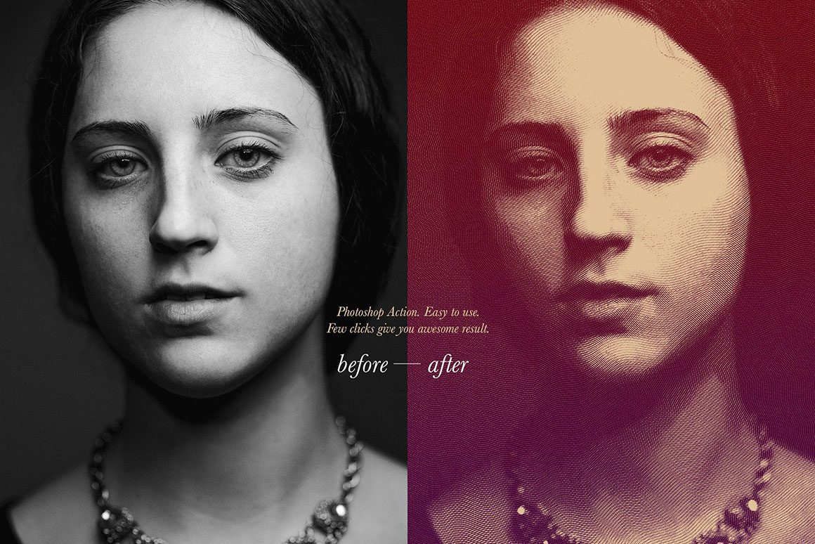 Engraving and Halftone Creator from VintageVoyage provides 30 vintage style engraving or halftone Photoshop actions! You can convert your photos or graphics into various vintage style halftone images without much effort.