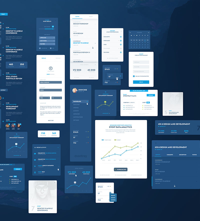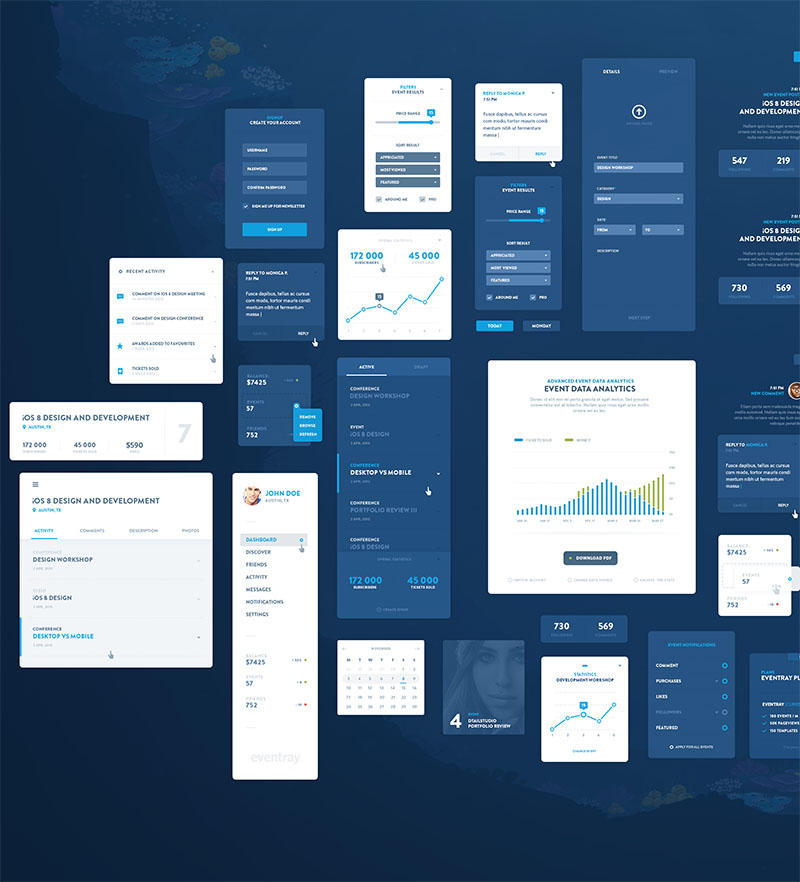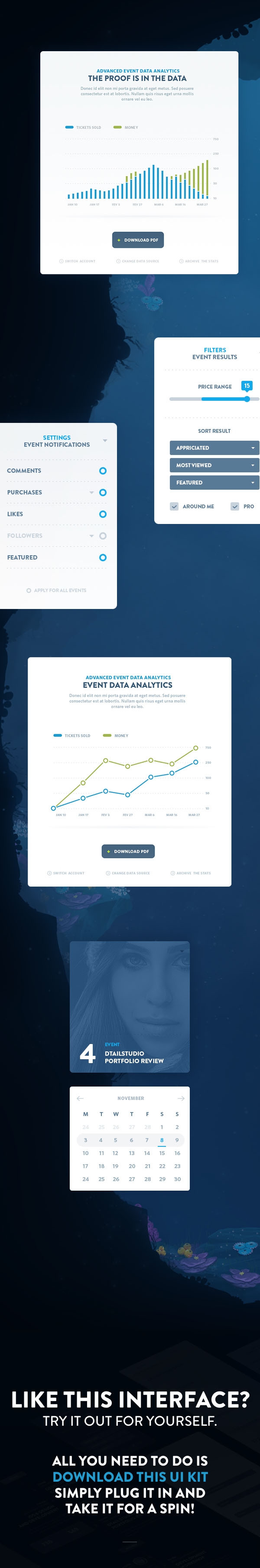 This ready-to-use interface kit from Dtailstudio includes multiple layouts and UI elements designed for Web and Mobile use. Create your new web design in minutes. Enjoy 🙂 Please take a look at next cool artworks from Dtailstudio here!