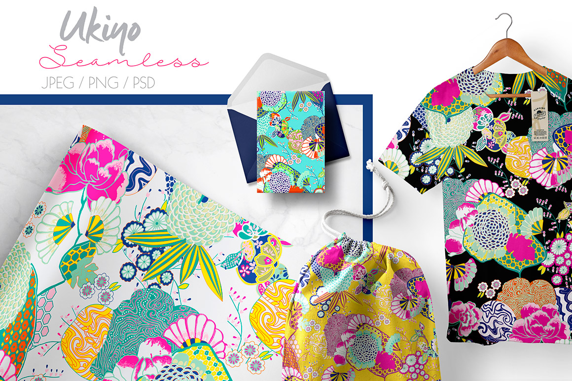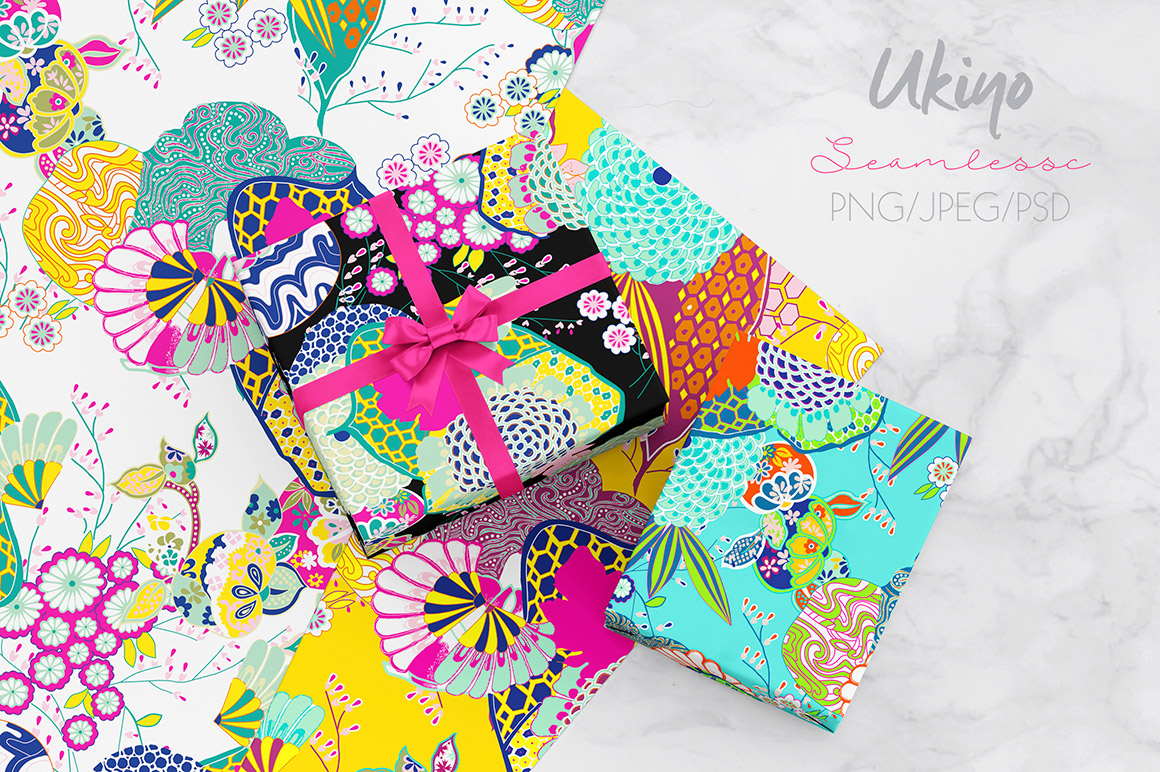 - 12 artistic seamless patterns sets with more file formats: PNG, JPG, PSD…
