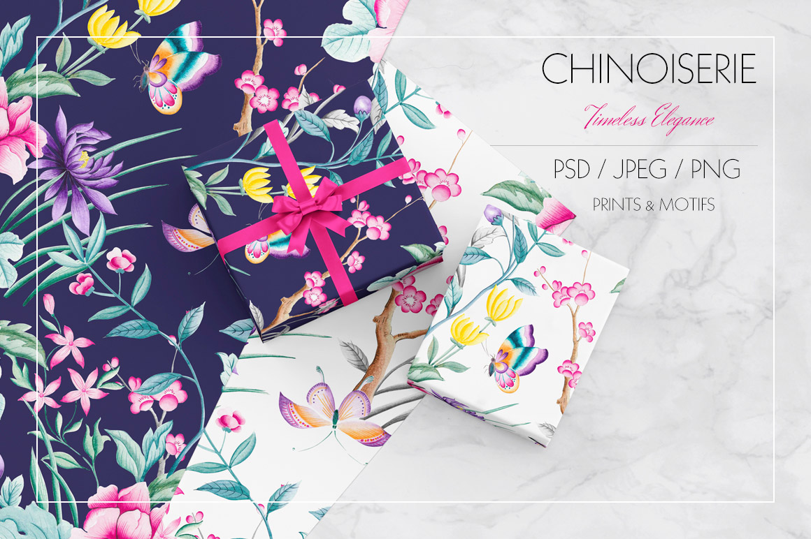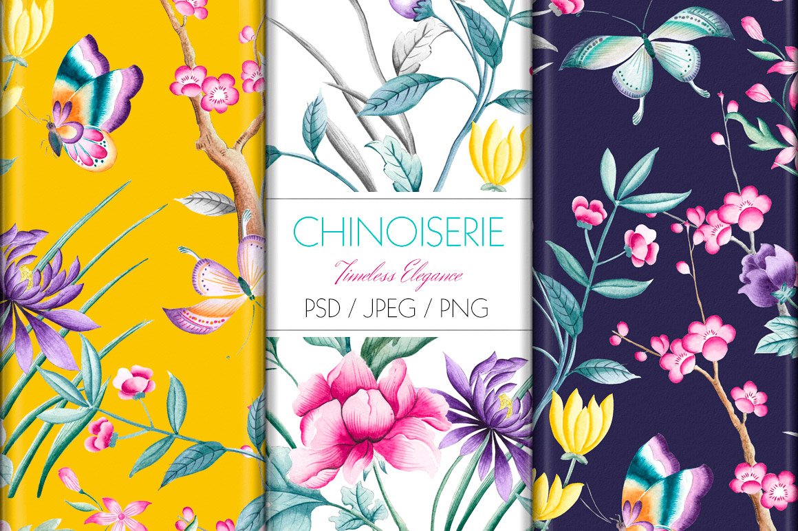 - A JPEG folder with all Chinoiserie print in all 3 color bases.