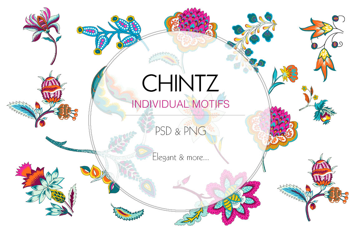 - PSD folder which contains the Print files in transparent background in all colorways and PSD file of Motifs in different layers.