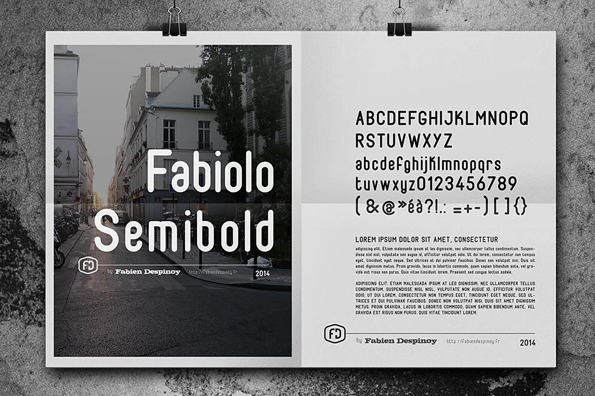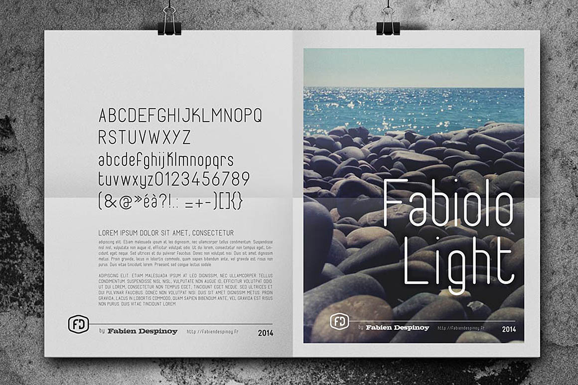 This cool & free sans serif custom font is from Fabien Despinoy. In 3 versions: light, regular & bold! Download & enjoy 😉