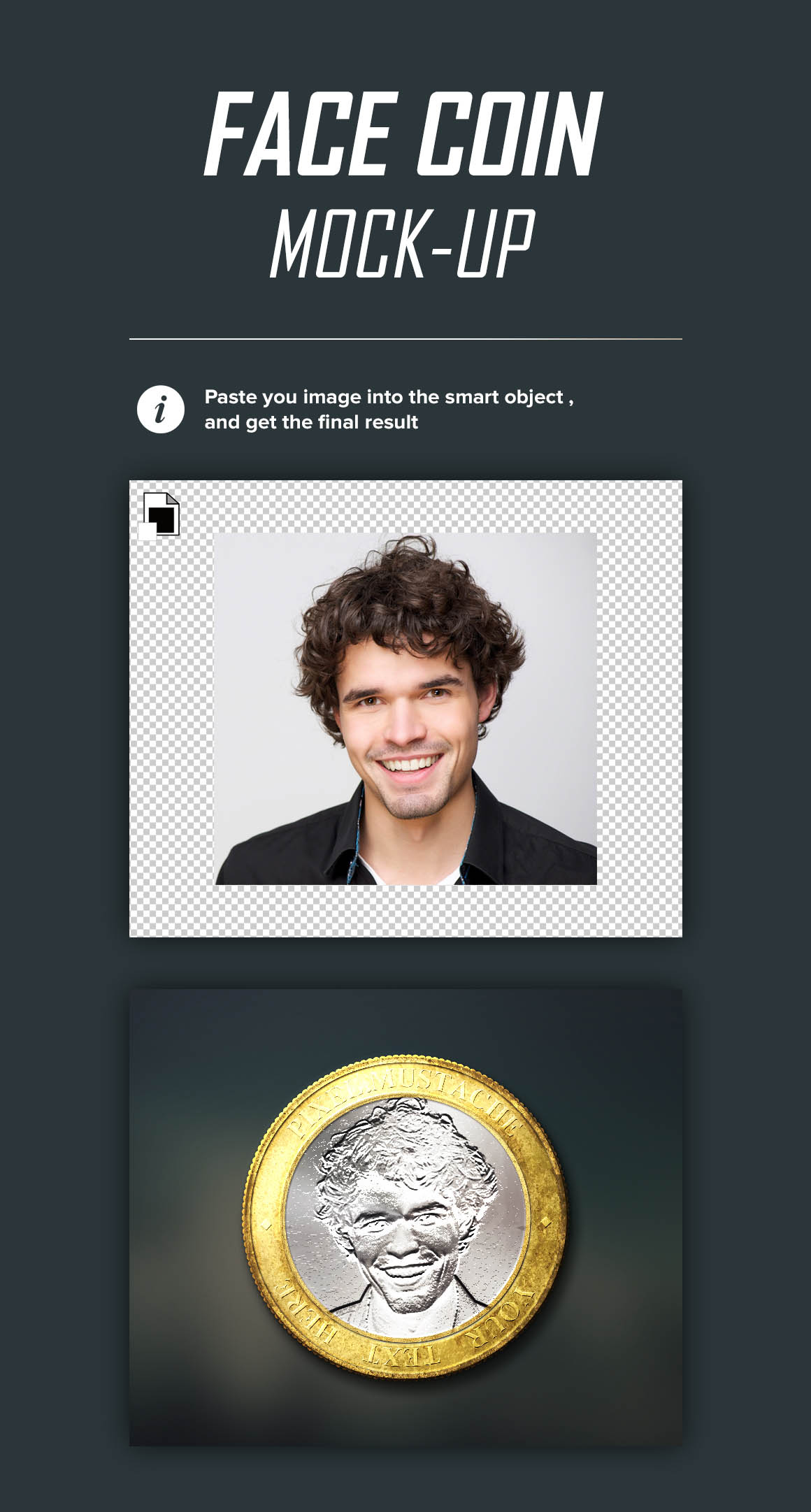 Cool & free Photoshop photo effect mock-up from PixelMustache. Get a cool coin with your photo in seconds. More amazing freebies & items from this author here!