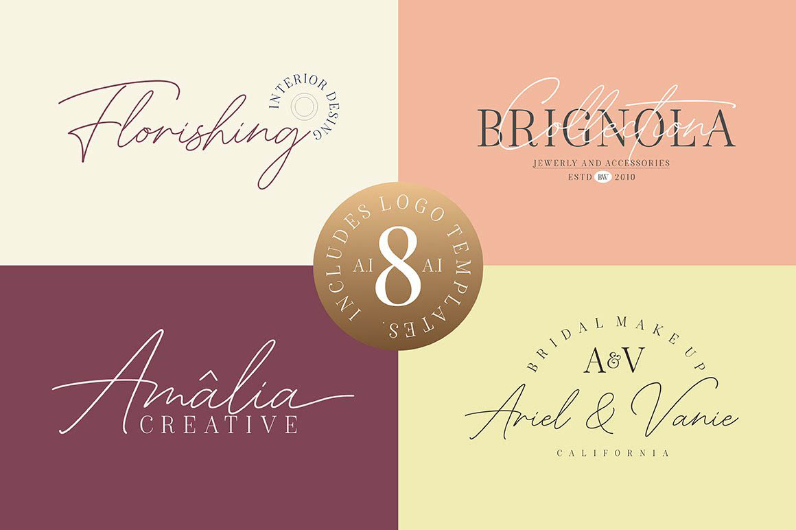 8 BONUS Logo Templates that you can edit and customize in Adobe Illustrator.