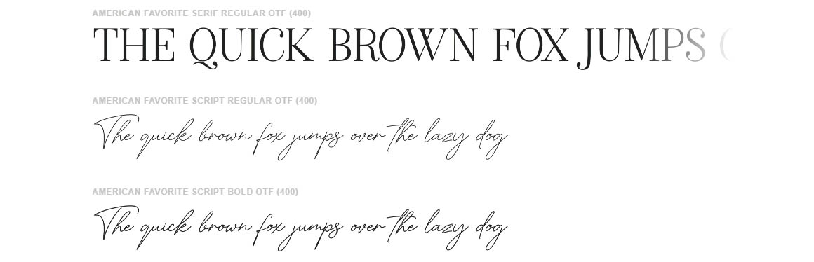 American Favorite Script Regular / Bold • Thin and realistic signature fonts containing 52 automatic ligatures, lowercase letters, uppercase letters, all punctuation & numbers.