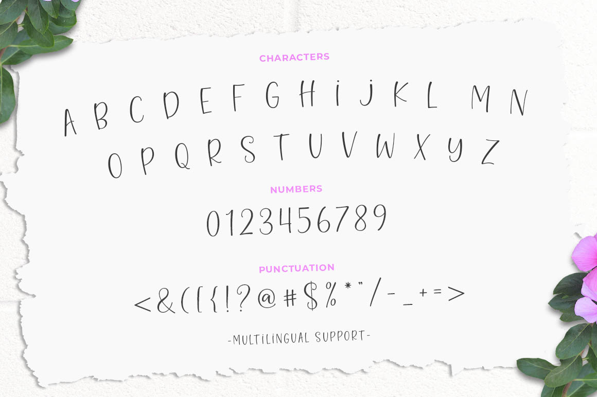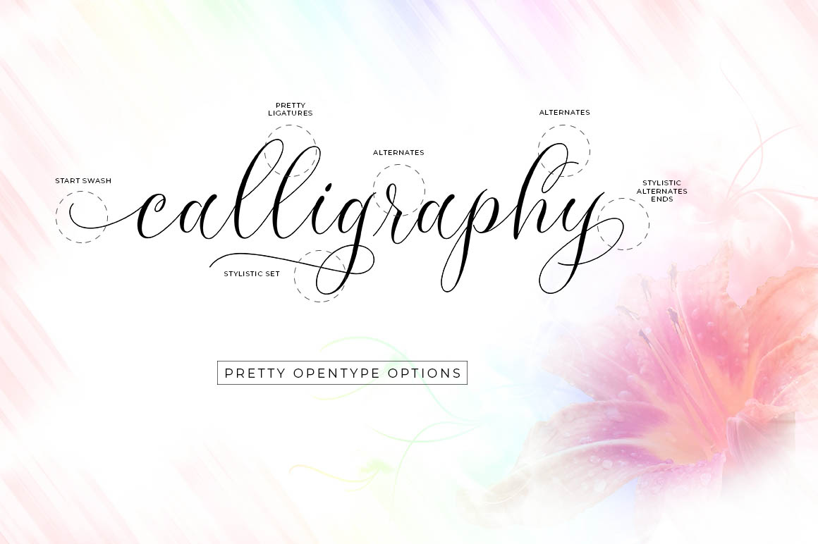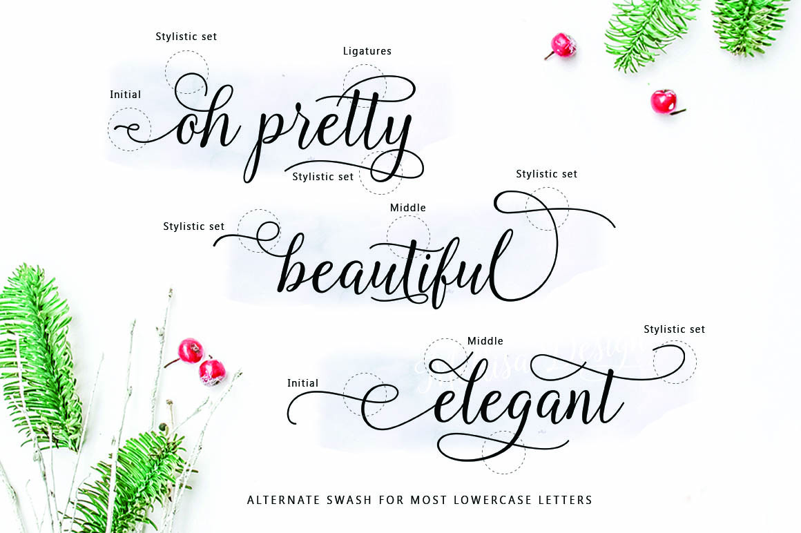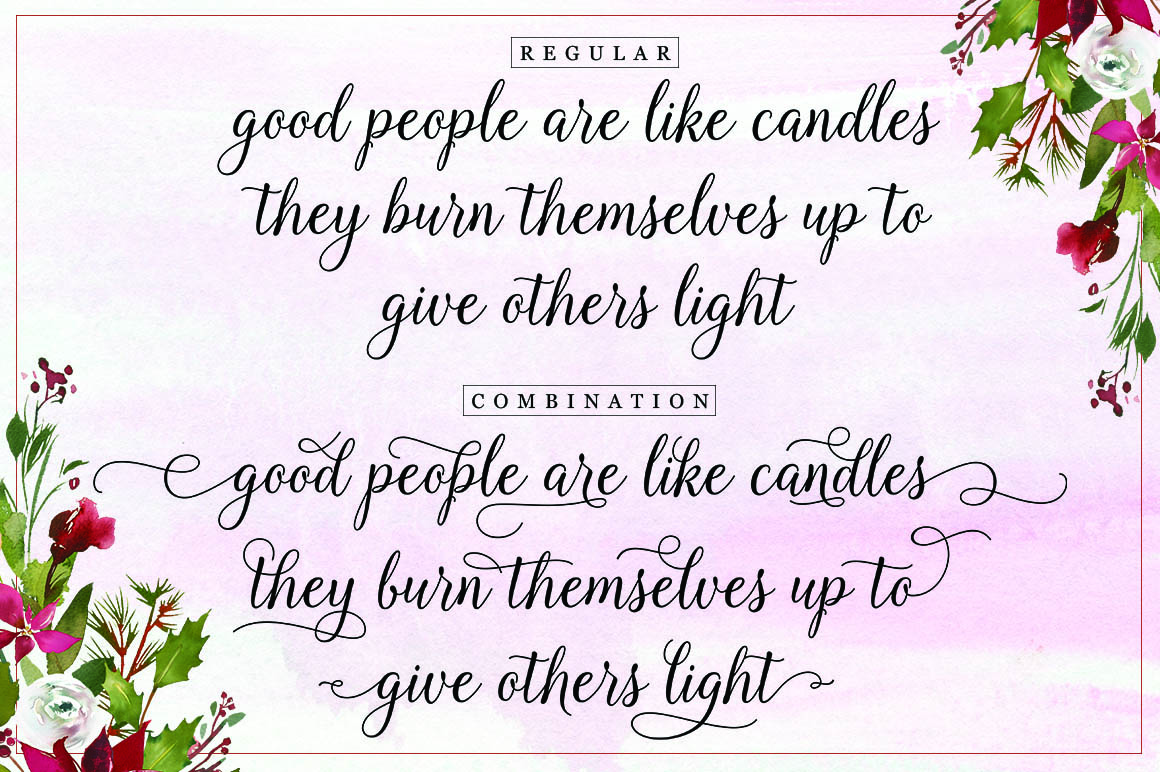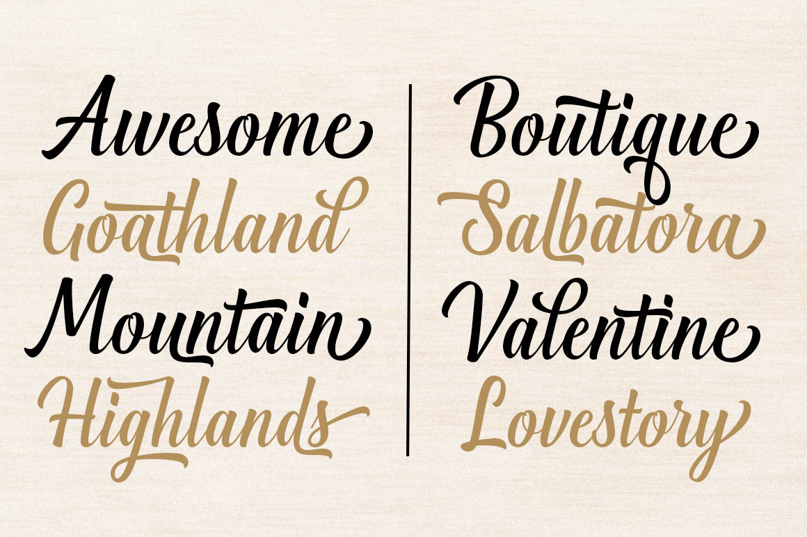 Introducing a new quality calligraphy font is Authemart Script. High-quality script fonts come with modern and vintage touches in them. Inspired by a mixture of copper calligraphy with handlettering style. OpenType feature with Stylistic Alternatives, Swash, Ligatures, Stylistic sets. It allows you to mix and match letter pairs to fit your design, and also comes with modern ornaments to make this font look elegant and perfect. Authemart is attractive like a smooth, clean, feminine, sensual, glamorous, simple and very easy to read. The classic style is perfect to be applied in various formal forms such as invitations, labels, menus, logos, fashion, make up, stationery, letterpress, romantic novels, books, greeting / wedding cards, packaging, labels, and more.