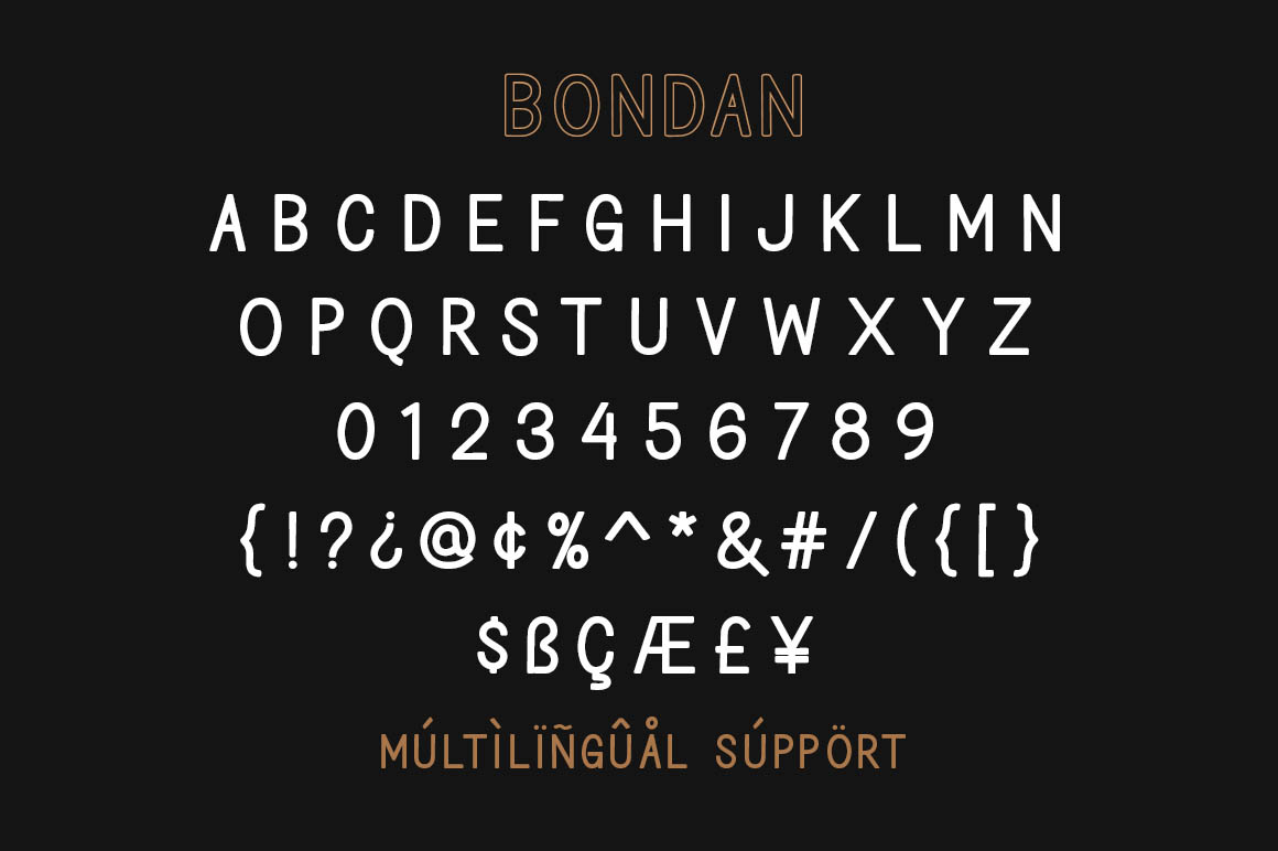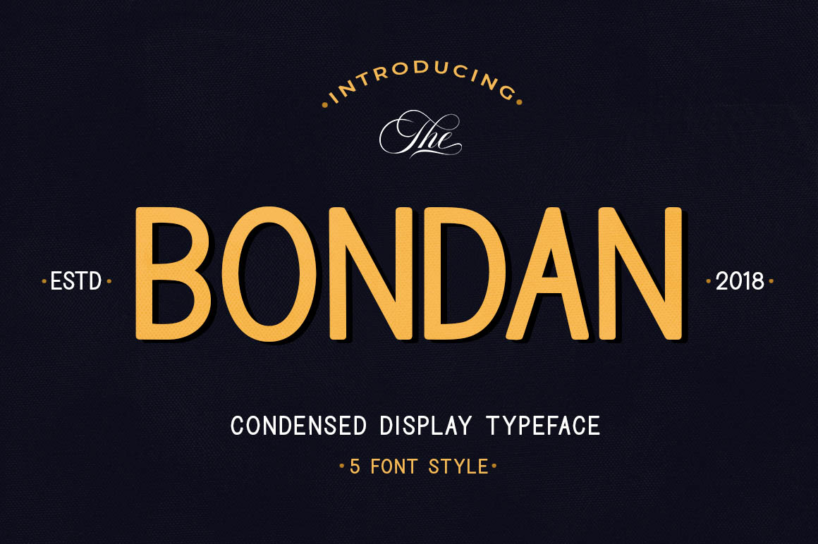 Bondan is a family of Sans Serif fonts designed with a modern and vintage feel. Strong and dynamic. We set individual letters of medium distance for perfect typography. Bondan is very versatile. Perfect for all brands, magazines, posters, logos, logotype stickers, website titles, packaging, branding, quotes, business cards and more . Bondan is equipped with a full set of uppercase letters, lowercase letters, numbers, punctuation and multilingual support. Each font family version is available in the .TTF and .OTF formats. for a total of 5 font files.