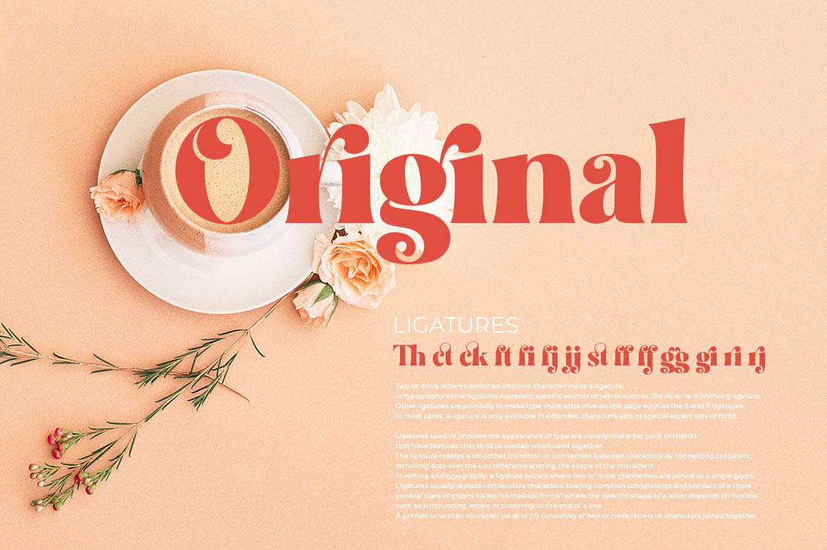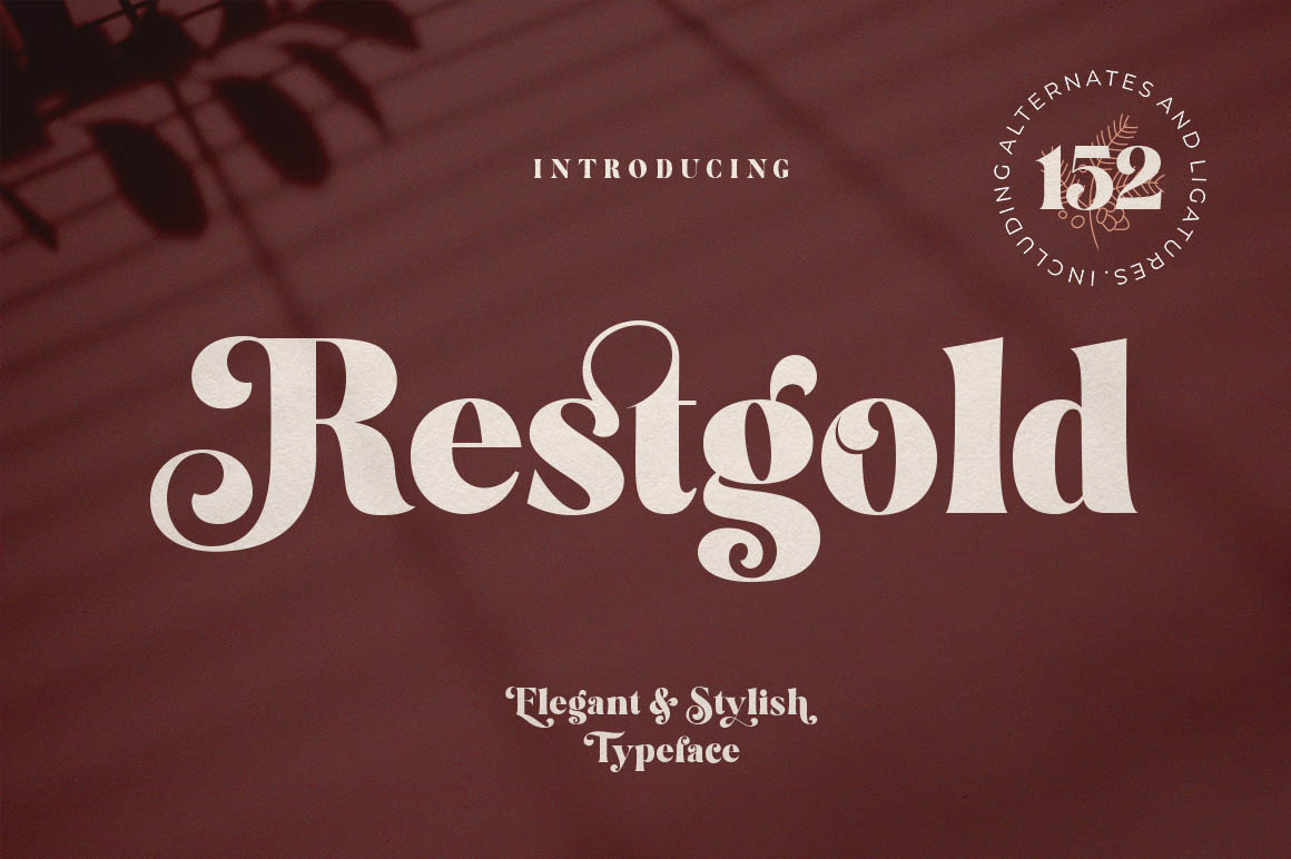 Restgold is modern Serif typeface, high-contrast Serif typeface designed to create elegant, original and expressive characters. making it a complete type system for all types of use, from branding projects, logo, wedding designs, advertisements, product packaging, product designs, label, photography, poster, invitation, stationery, and much more. Restgold is a serif typeface that is suitable for classy branding and editorial designs. Alternative versions include swash and more than 350+ glyphs and 16 ligatures, allowing for more stylized designs.
