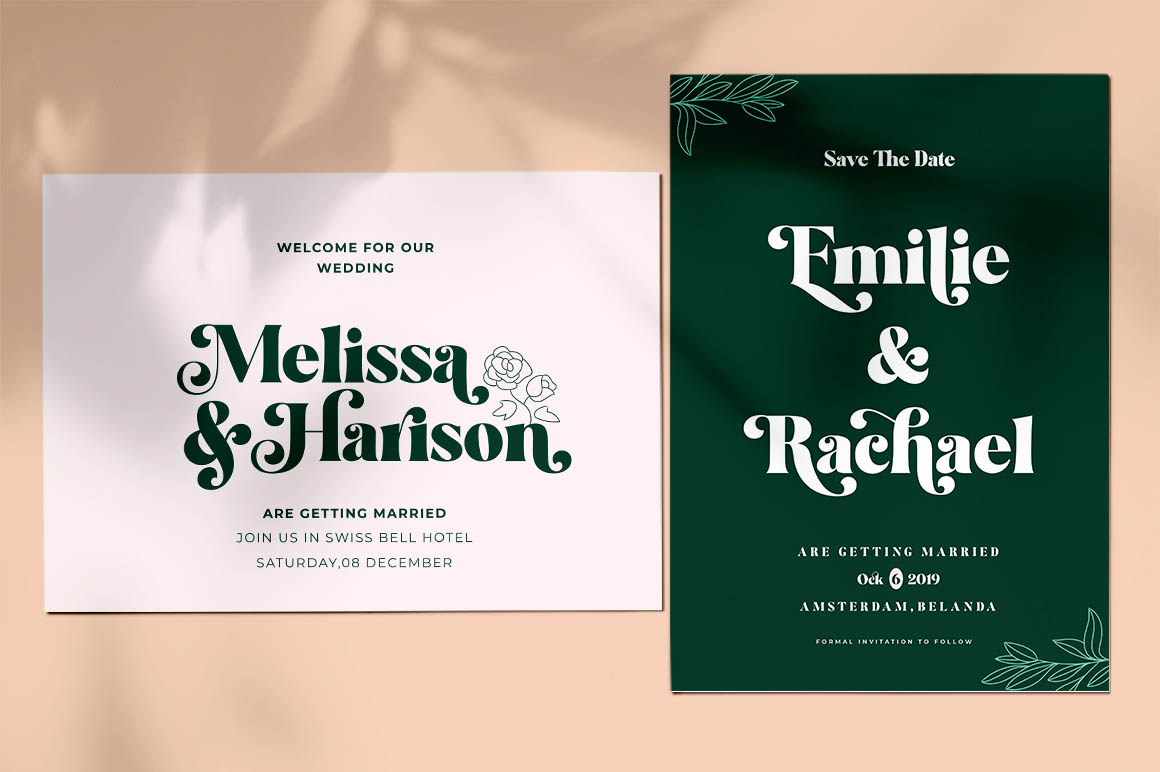 Molandika Script is elegant calligraphy font, designed to convey elegance and style. It is slender, feminine and friendly, This font is casual and pretty with swashes. Can used for various purposes. such as logo, product packaging, wedding invitations, branding, headlines, signage, labels, signature, book covers, posters, quotes and more.