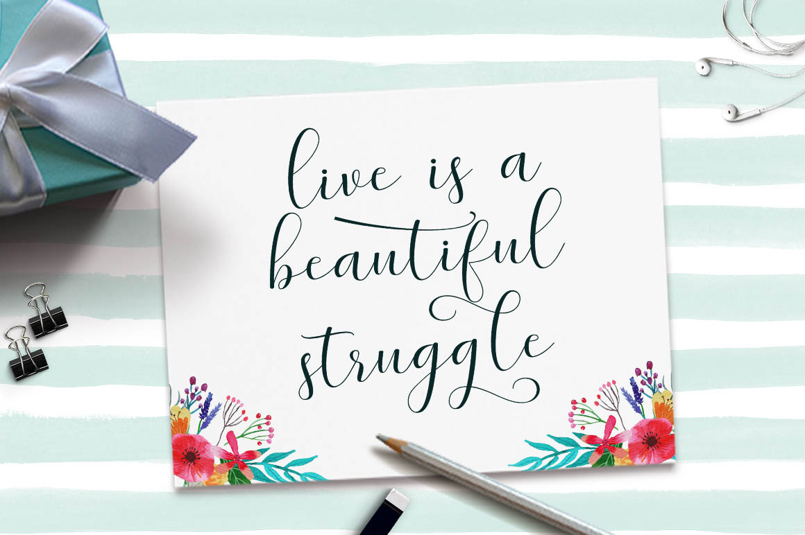 Allow me to introduce Hello Blushberry – Font Duo is a playful script containing many choices of alternative characters to choose from as well as ligatures that look natural to add to the authenticity of letters. A collection of strange and initial swash tips is also included to add finishing touches or fill the design space in your type design. Hello Blushberry a modern handwriting fonts, loaded with awesome opentype features, and full alternative upper and lower case character sets. make custom letters a dream thanks to all the extra decorative choices you can enter for beautiful and unique customizations – swash, endings, alternative letters and ligatures all make it the prettiest little thing since tutus and tiara. Designed to work harmoniously, this duo font consists of super fine and casual signature scripts and a complete and clean set of all sans serif letters. Sans Serif fonts consist of two outline fonts of different weights, and a regular version. Layer them with different colors and turbidity to get a million different views. This font is perfect for branding, logos, web and editorial design, branding, prints, invitations, crafts, quotes, and more.