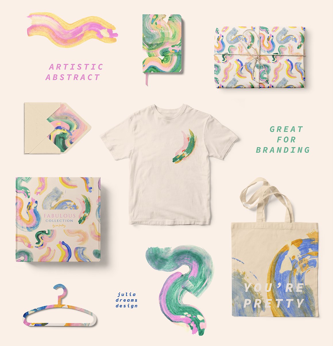All these cool handdrawn graphics from Julia Dreams are ready for print or online use! MAIN USAGE: flyers, posters, greeting cards, branding, packaging, phone cases, bags and totes, wall art, fabrics, t-shirts, website backgrounds. Actually any place you love! Enjoy 😉