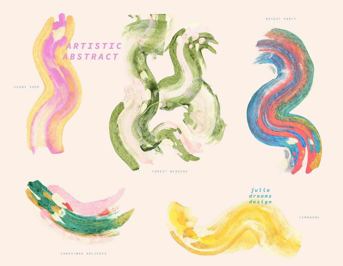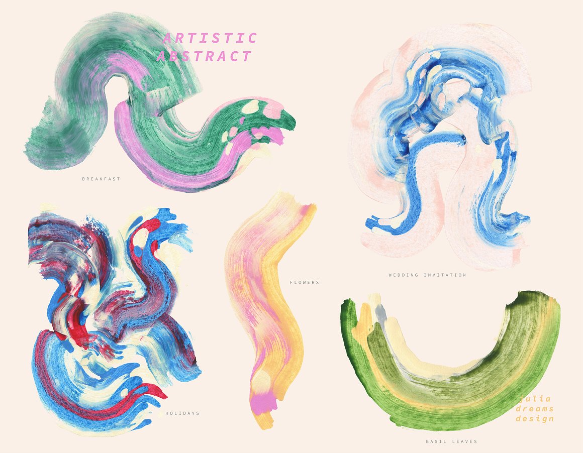 Artistic Abstract! Handcrafted with love, vibrant and colorful textures. This is a great addition to create wedding branding, stationery, greeting card, photo frames and other beautiful things. Just add ready-made graphics: patterns and shapes. Huge selection of color palettes and shapes. These graphics are ideal for the creation of the corporate identity of your shop or your small store. Or if you suddenly need to decorate your room or create a wedding invitation.