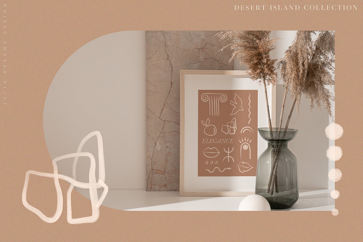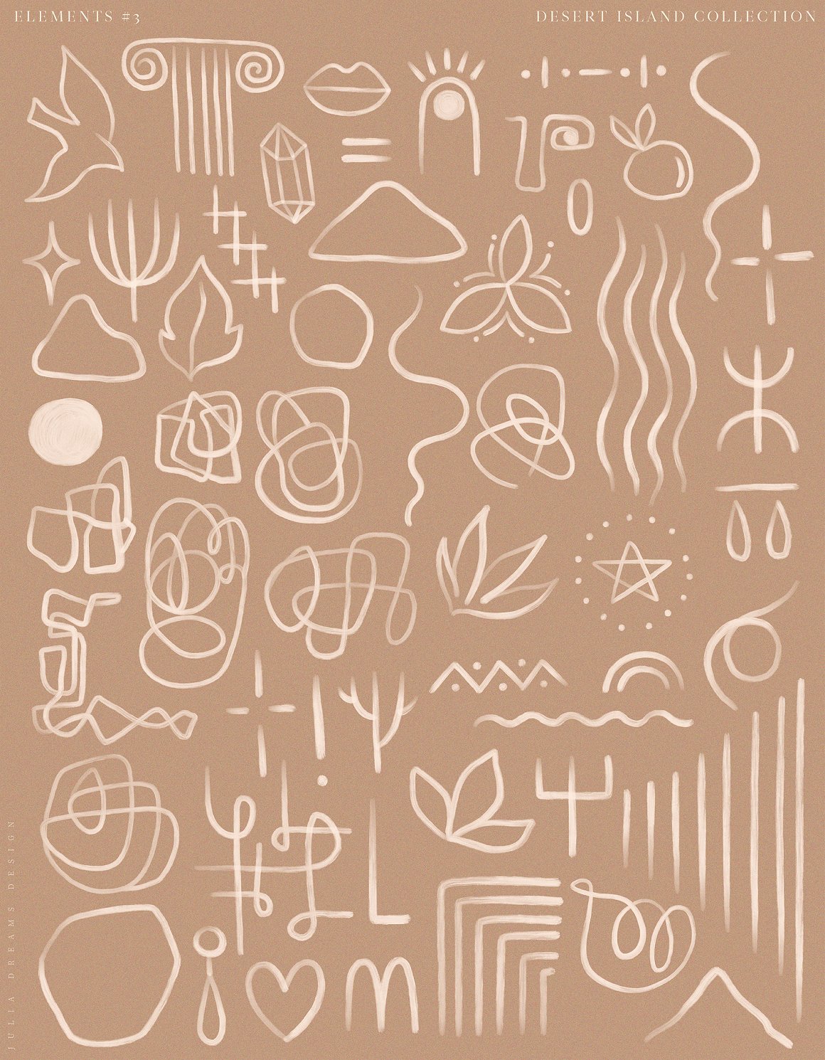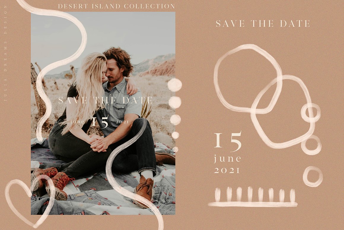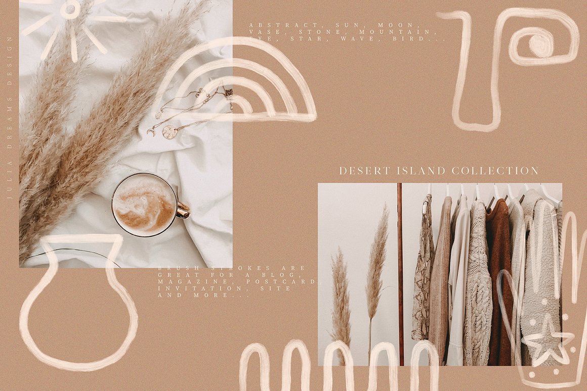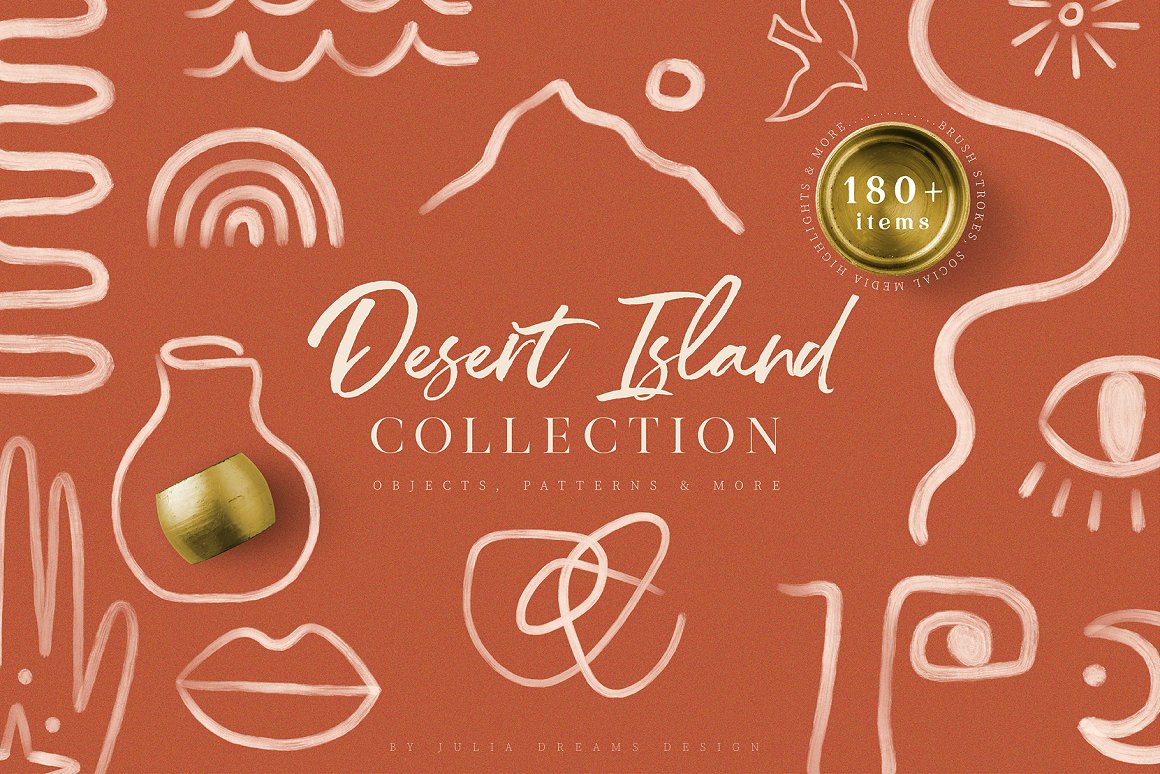 Desert Island Collection. Hand painted with love brush elements can perfectly complement your project and help create a sophisticated, restrained and fashionable style. All these elements can make a special atmosphere in your project: from wedding to stationery branding, from logo to posters and postcards.