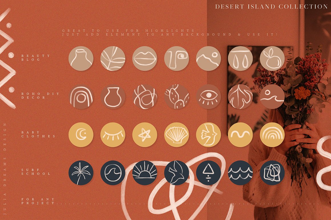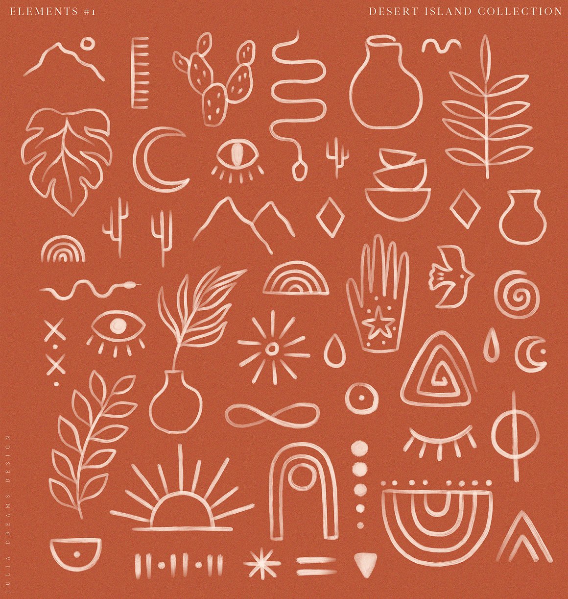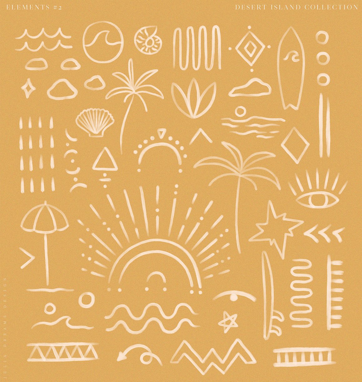 Desert Island Collection great for logo, posters, cards, branding, covers, gifts, social media accounts, wrapping paper, wallpaper, fabric, scrapbooking, stickers, sites, blogs, invitations and much more!