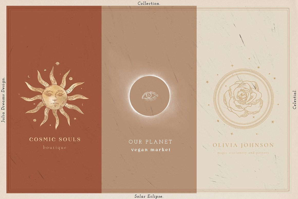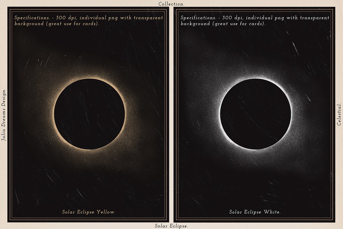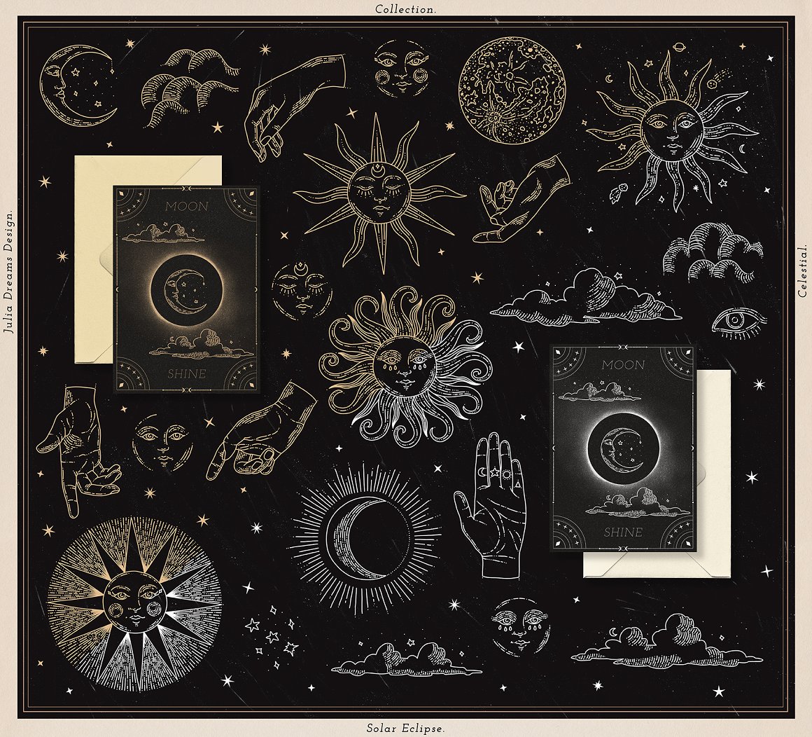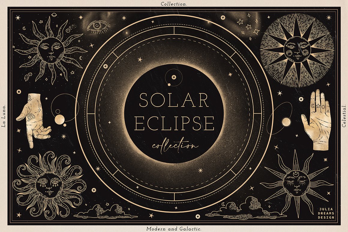 Solar Eclipse Collection great for logo, posters, cards, branding, covers, gifts, social media accounts, wrapping paper, wallpaper, fabric, scrapbooking, stickers, sites, blogs, invitations and much more!