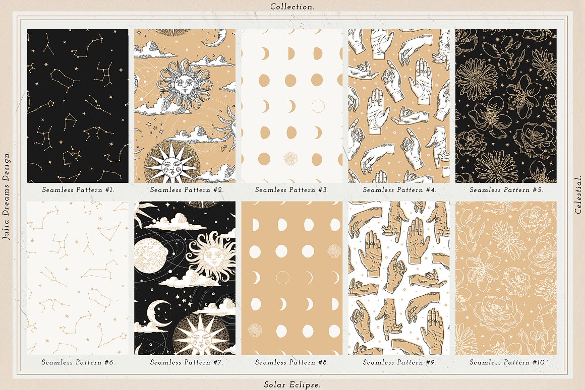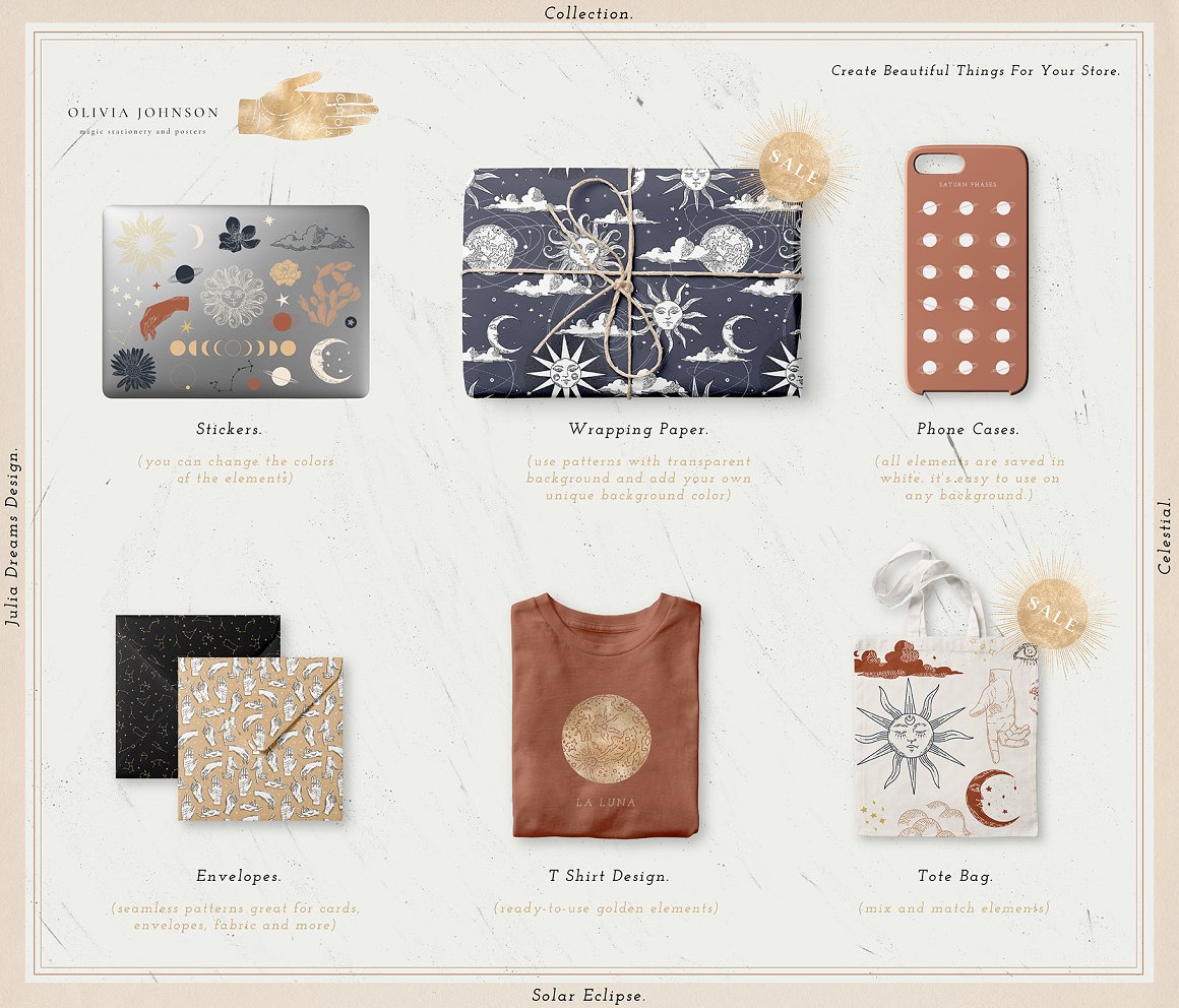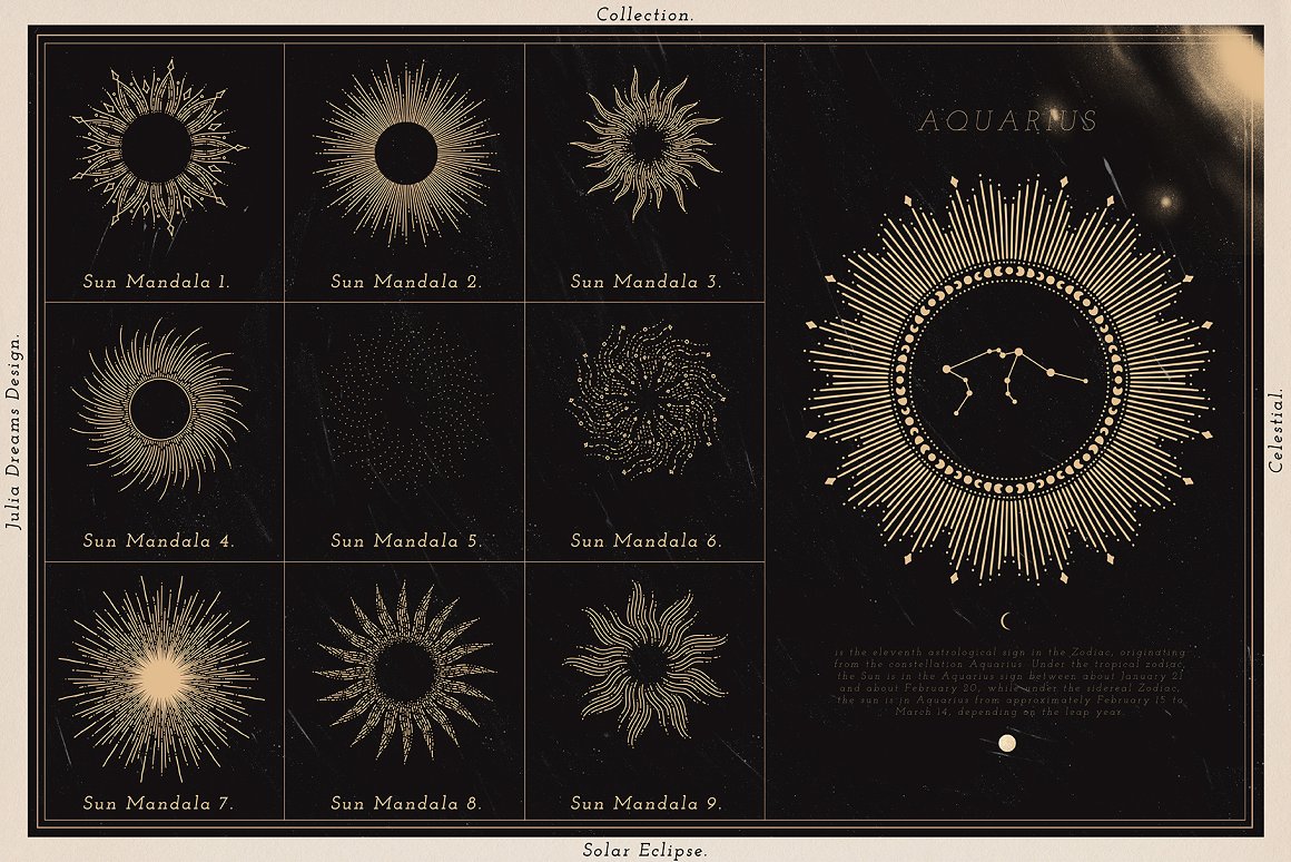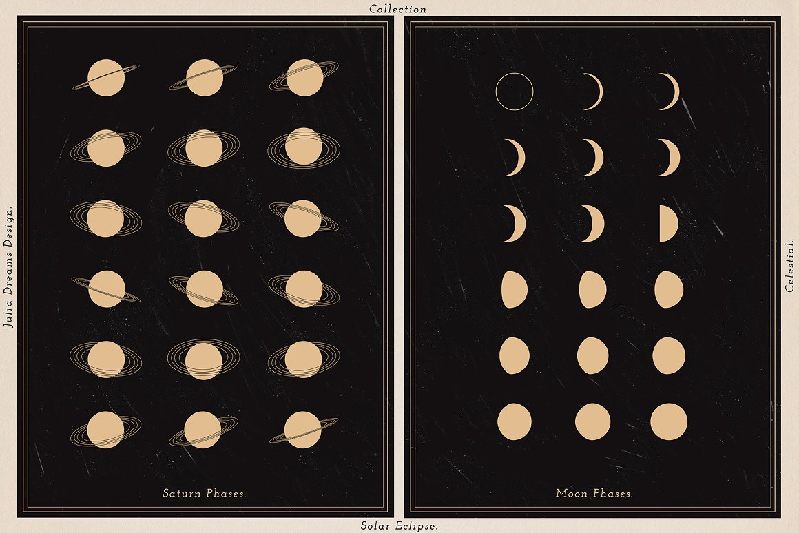 Solar Eclipse Collection great for logo, posters, cards, branding, covers, gifts, social media accounts, wrapping paper, wallpaper, fabric, scrapbooking, stickers, sites, blogs, invitations and much more!