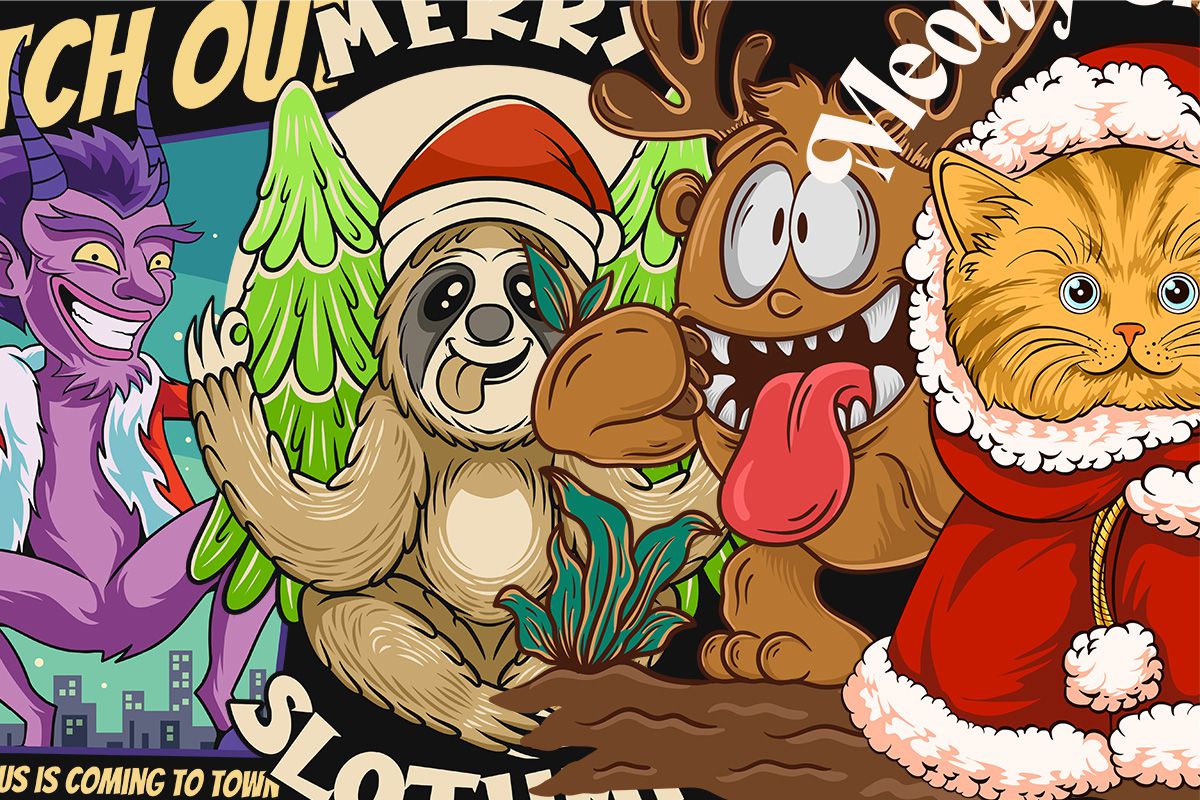 Add a splash of fun and Christmas style to your new funny projects with these 70+ vector & high-resolution PNG illustrations. Funny, street style or scary style on all of these vector images is perfect for trendy stickers, posters or T-shirt designs you can create for your shop or brand.