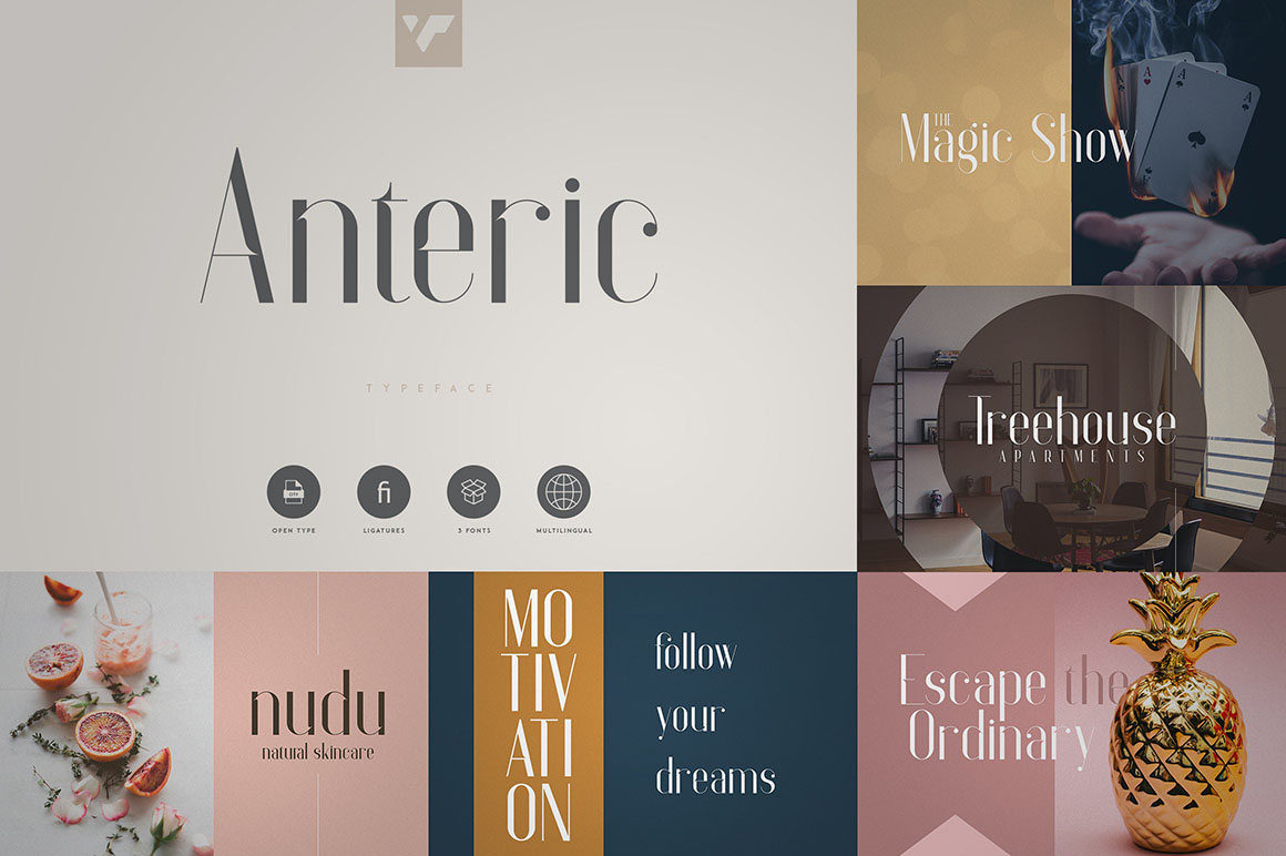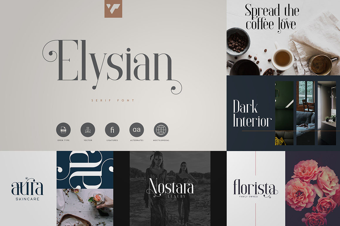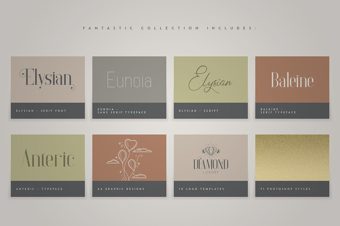Fantastic Collection from VPcreativeshop contains 13 multilanguage display fonts in 5 font families, 24 graphics and 10 vector illustrations or logo templates! Don’t miss this creative & modern style font & branding bundle 😉