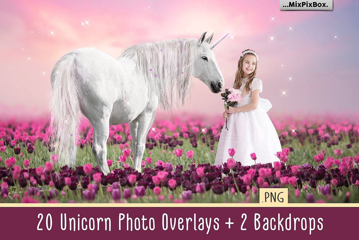13. Unicorn PNG Overlays Pack+ Backdrops from MixPixBox