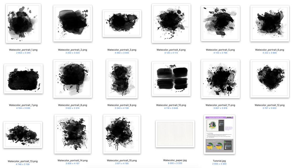 • Compatible with Photoshop & Photoshop Elements or with any graphic program that supports the PNG format
