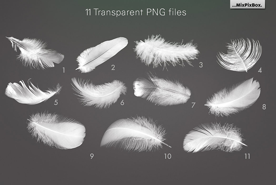 Take some gorgeous feathered shots from photography professionals and use them as an effect, overlay, picture element or background. Floating white feathers for your photos and designs will bring free-of-gravity motifs into your pictures.