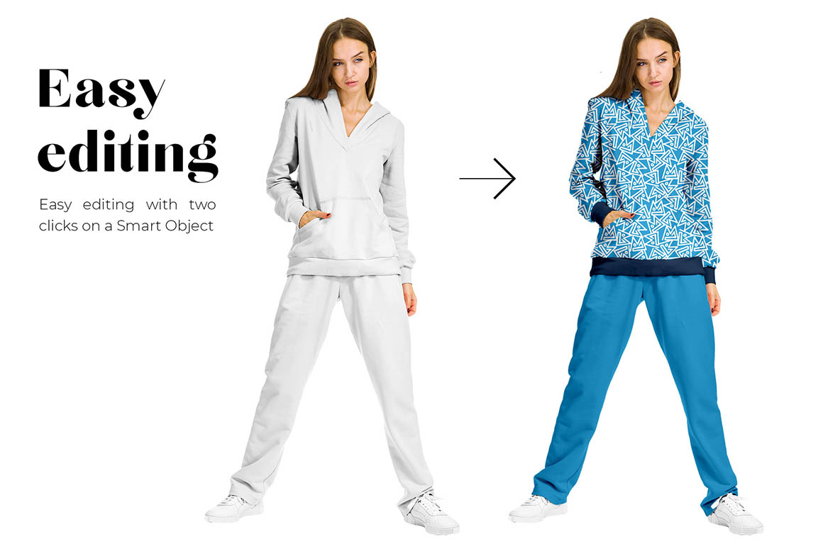 Sport style woman suit – presentation mock-up template in PSD format from Julia Smorochinska. Download & enjoy 😉