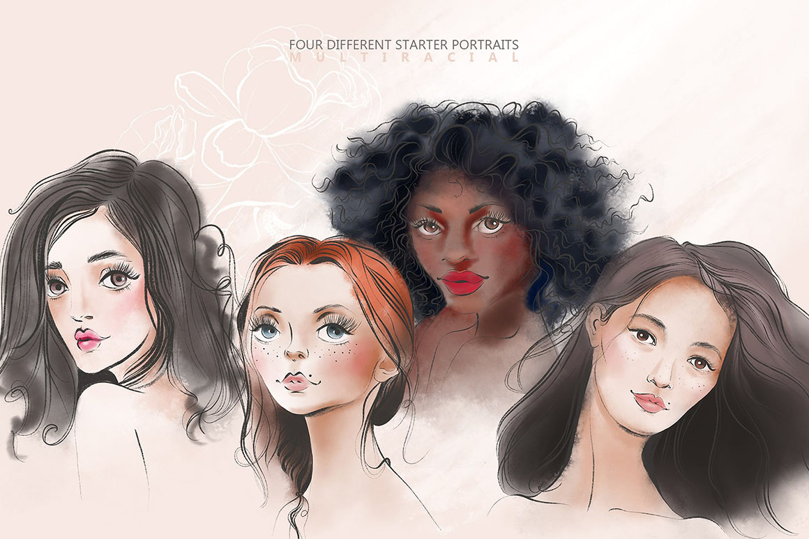 - 4 different starter, fully customizable portraits as layered PSD files
