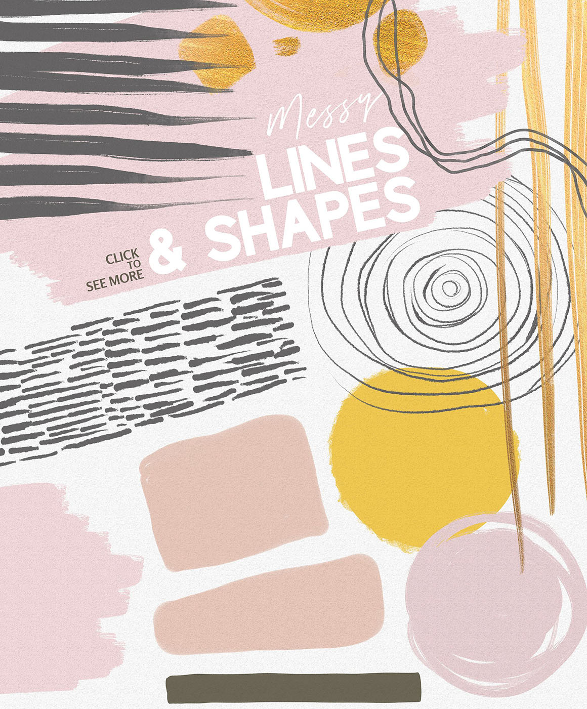Colorful Mess & Gold Vol.2 – 190 artistic graphic elements – Golds, splashes & shapes, brushstrokes and lines, flowers, letters and patterns