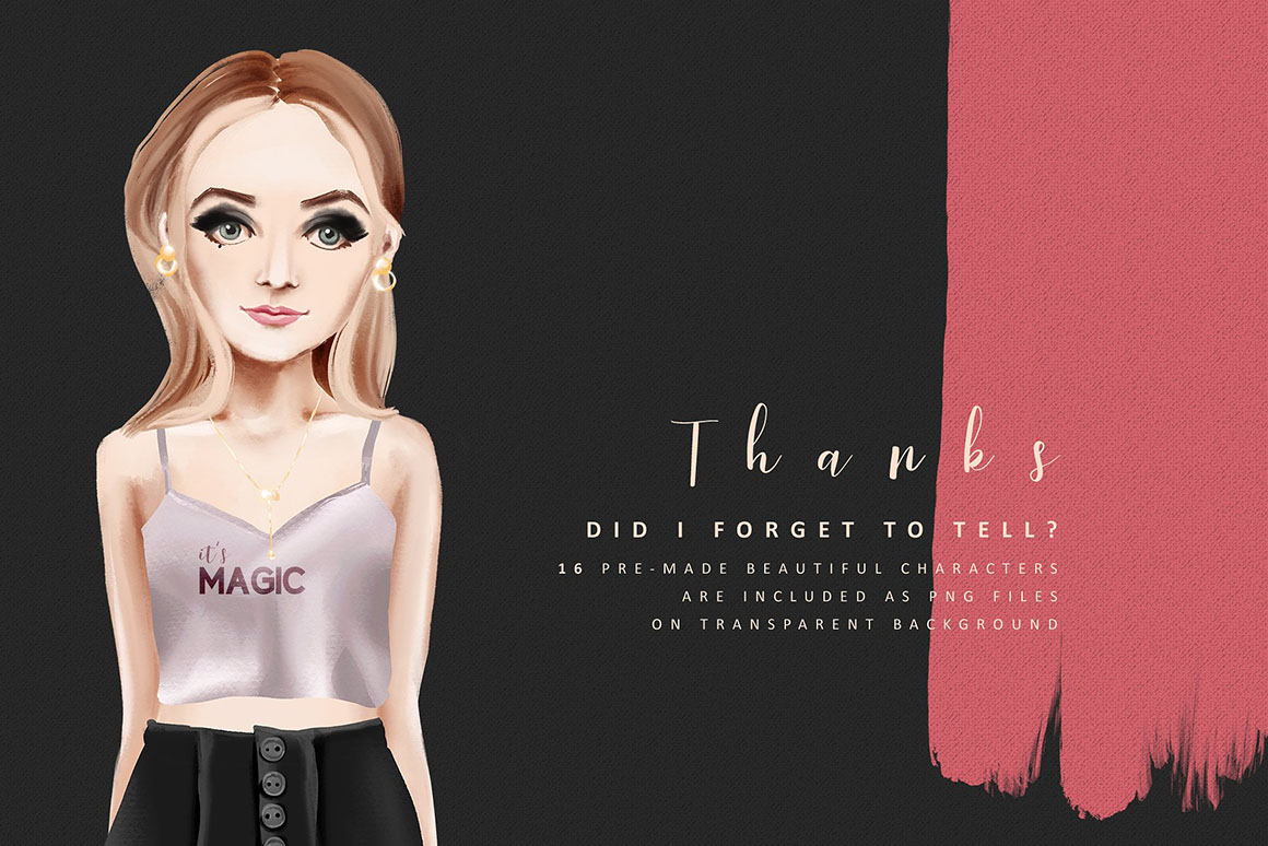 - 13 pre-made ready to use portraits (transparent PNG)