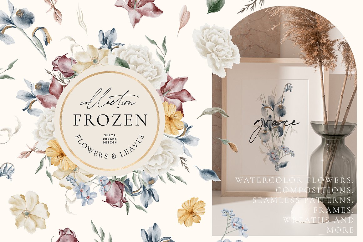 1. Frozen Flowers Watercolor Collection from Julia Dreams