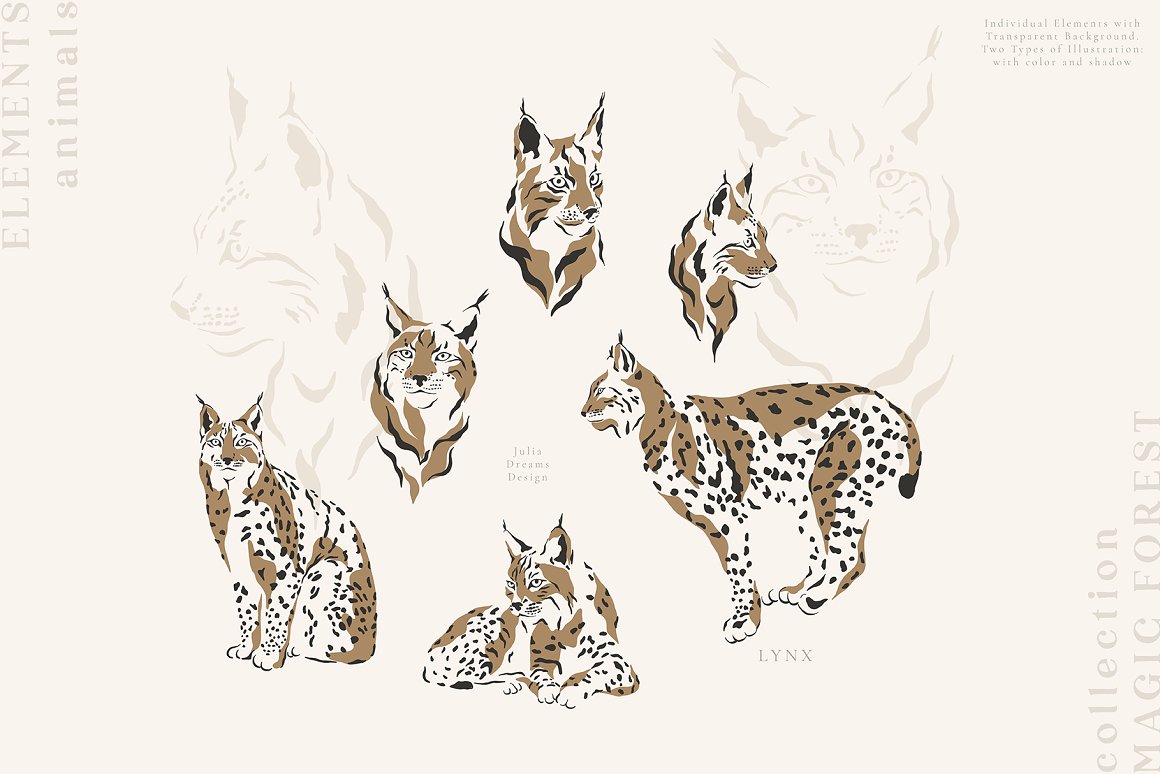 - 12 lynx – ai, eps and png with transparent background;