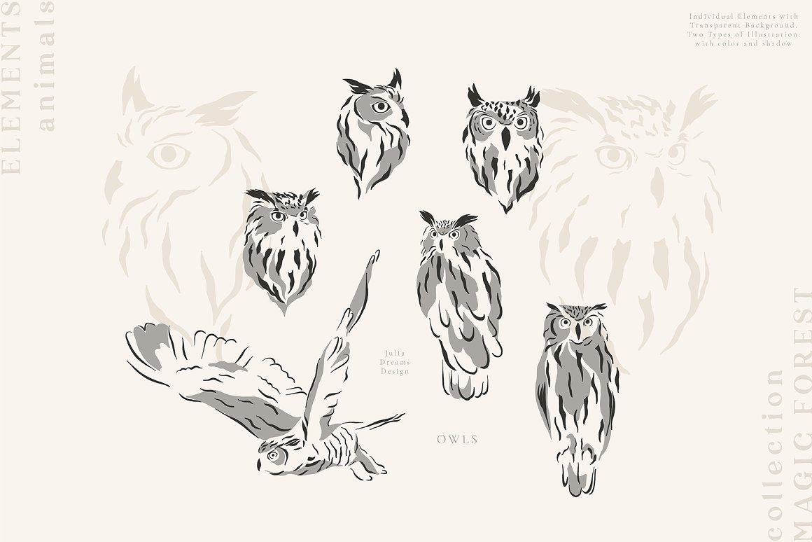 - 12 owls – ai, eps and png with transparent background;