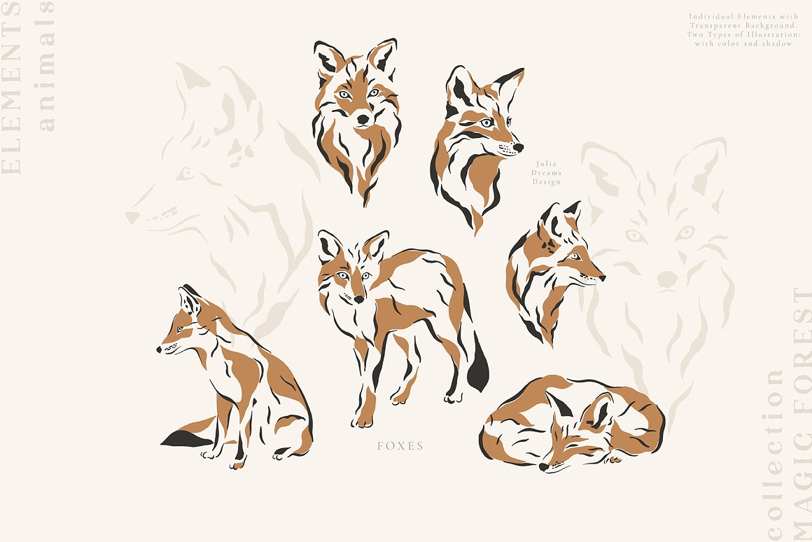 - 12 foxes – ai, eps and png with transparent background;