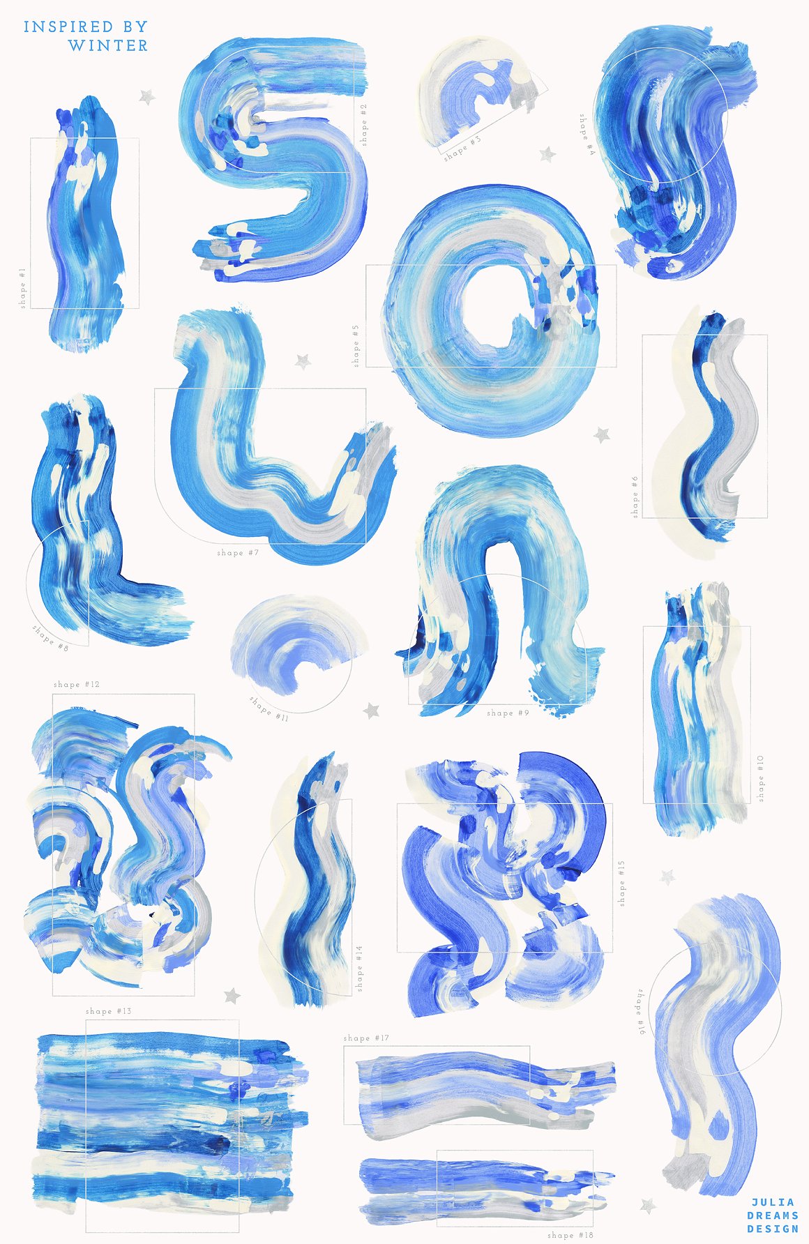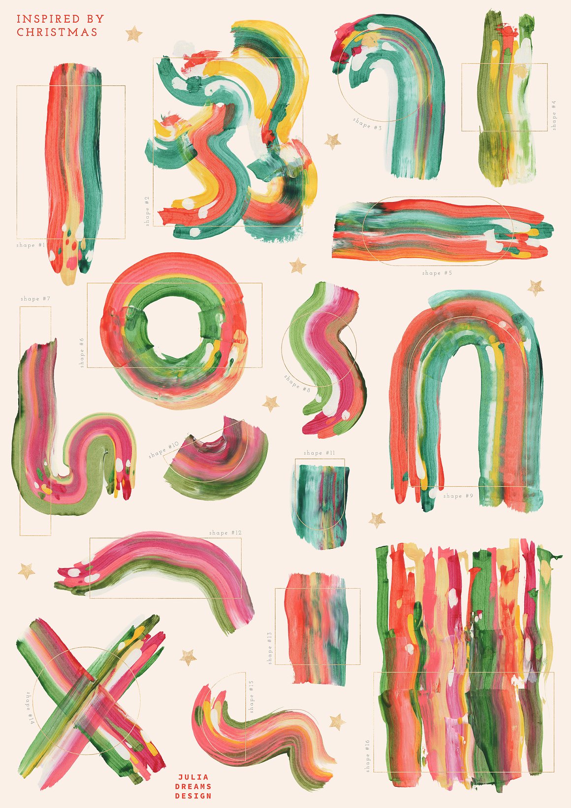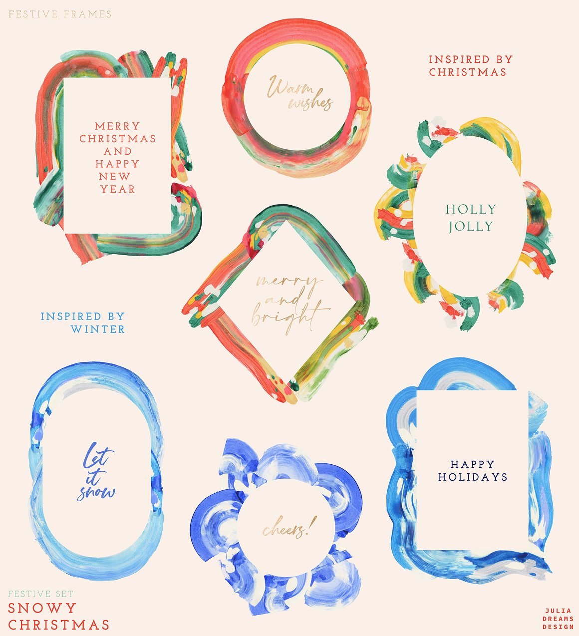 Magical and fabulous time is coming! Handcrafted unique acrylic brush strokes. This is a great addition to creating a Winter and Christmas mood in your home with greeting card, photo frames and other beautiful things. Just use ready-made patterns and frames for a festive decoration or create your own unique design using various graphics. These elements are ideal for the creation of the corporate identity of your shop or your small store. Or if you suddenly need to decorate your room. Add this beautiful hand painted elements and florals to create a postcard.